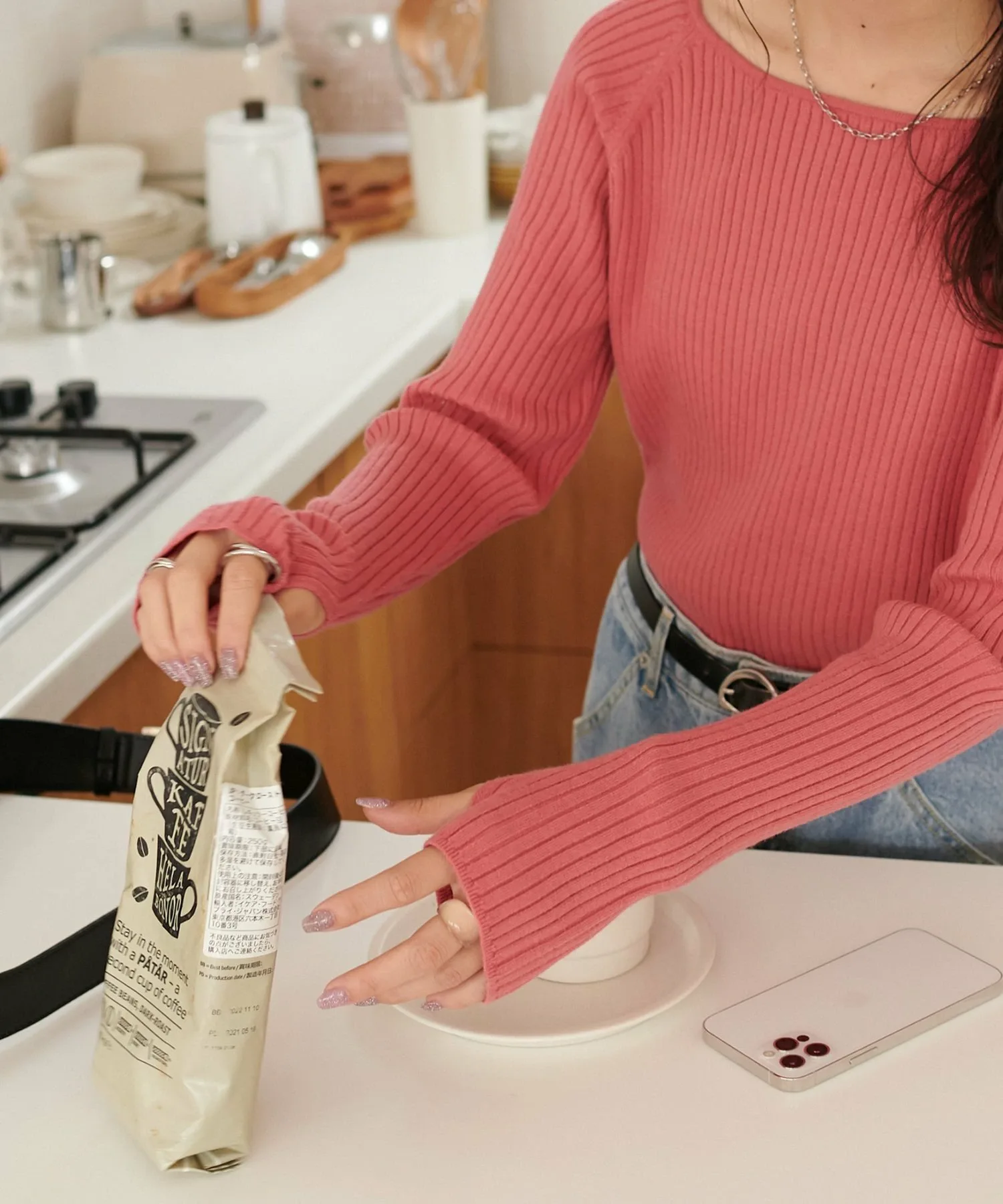 Персонал ростом 163 см: Трикотаж, который не слишком облегает тело. Отверстия для больших пальцев — стильный акцент в этом году.
