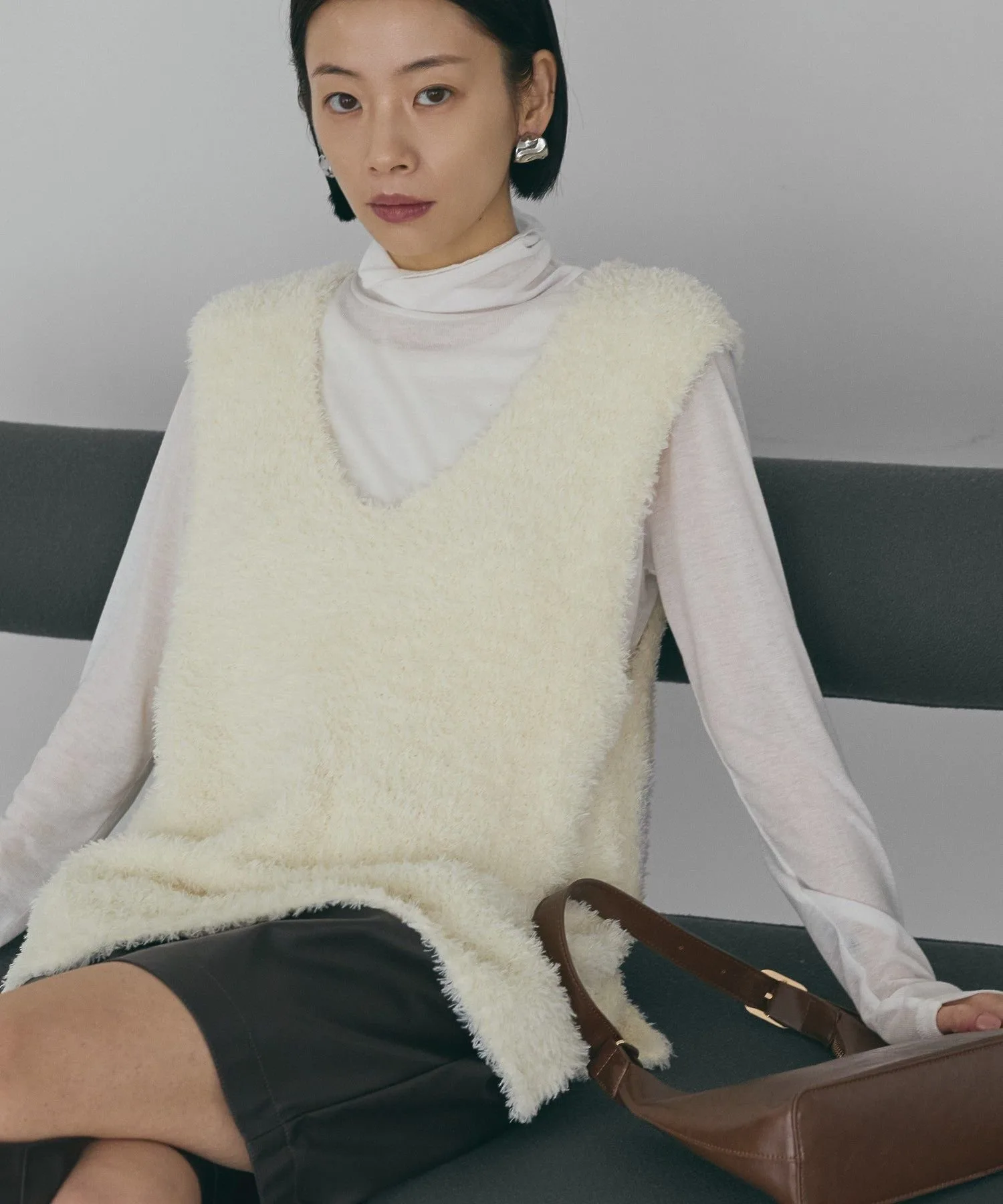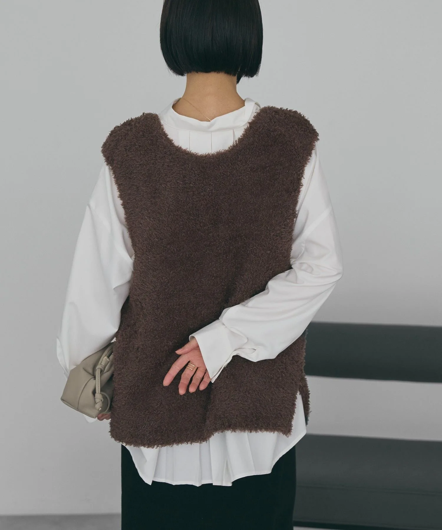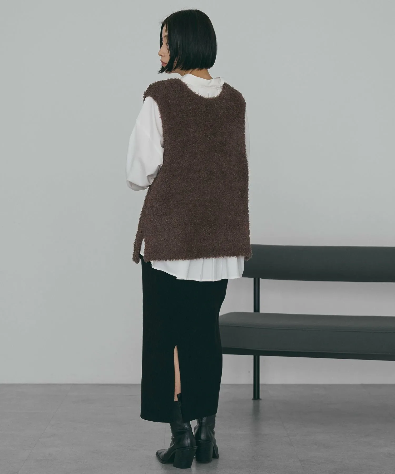 Этот жилет с V-образным вырезом украшен мягким, пушистым мехом. Его силуэт идеально облегает фигуру, не создавая ощущения громоздкости, а длина до талии помогает скрыть недостатки фигуры. Разрезы по бокам придают ему прямой, ниспадающий силуэт. Он хорошо сочетается как с брюками, так и с юбками I-силуэта. Прозрачность [Нет]