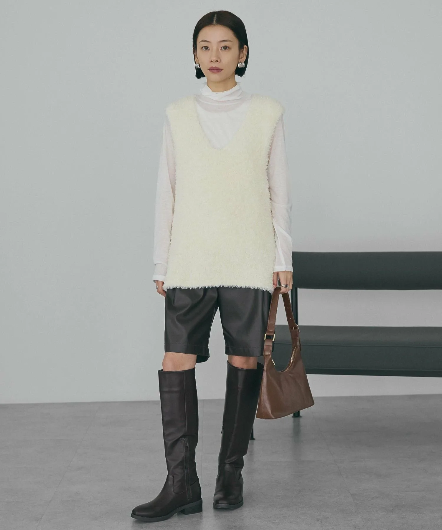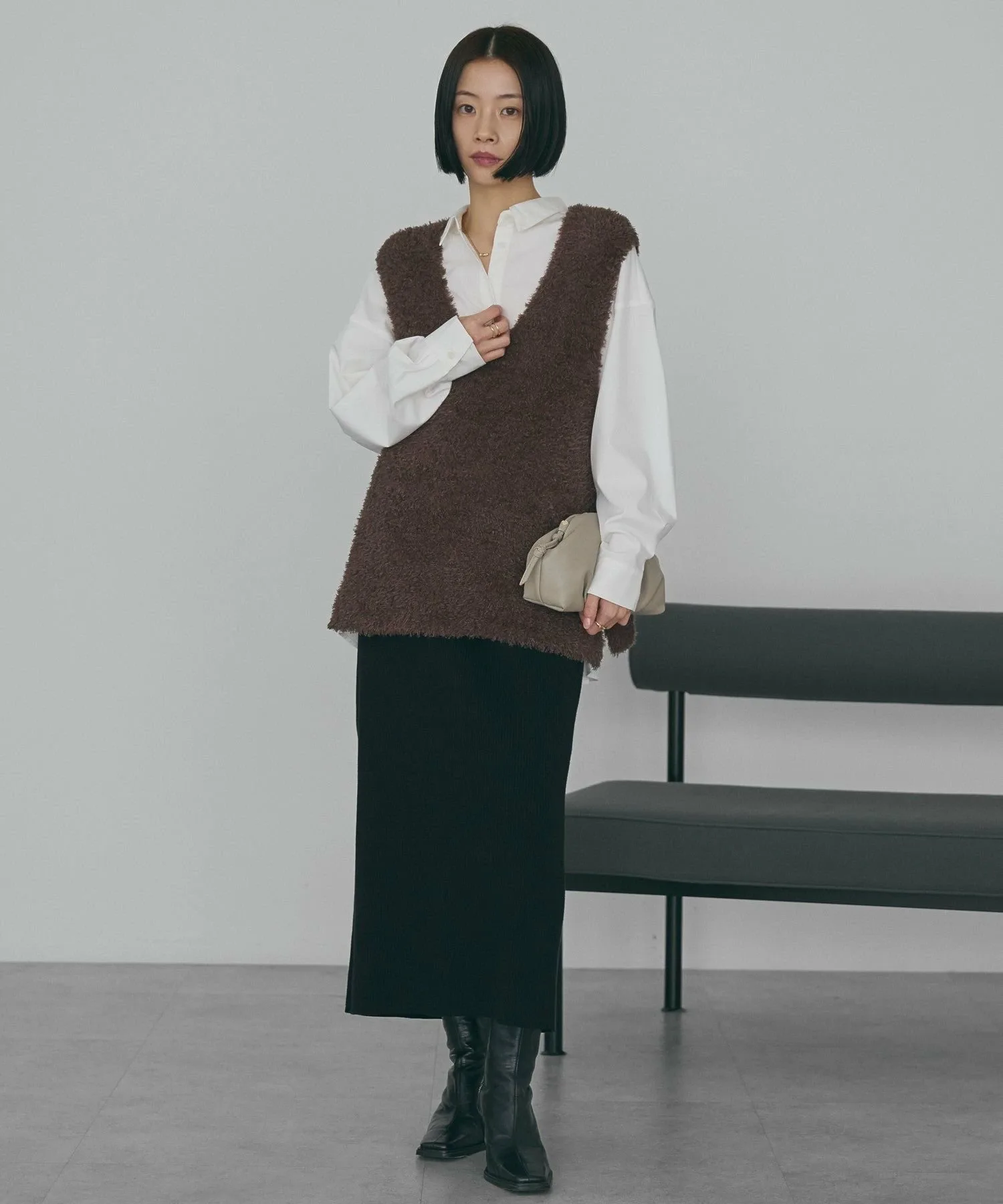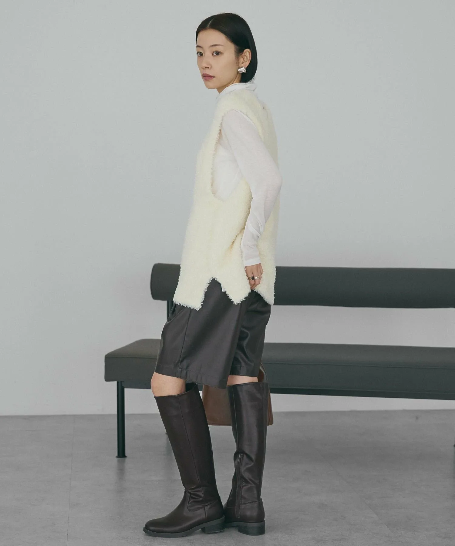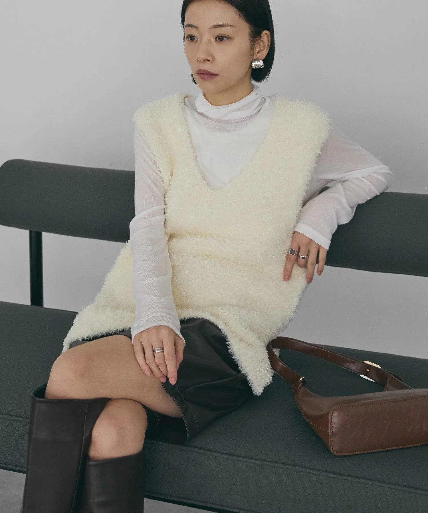 Этот жилет с V-образным вырезом украшен мягким, пушистым мехом. Его силуэт идеально облегает фигуру, не создавая ощущения громоздкости, а длина до талии помогает скрыть недостатки фигуры. Разрезы по бокам придают ему прямой, ниспадающий силуэт. Он хорошо сочетается как с брюками, так и с юбками I-силуэта. Прозрачность [Нет]