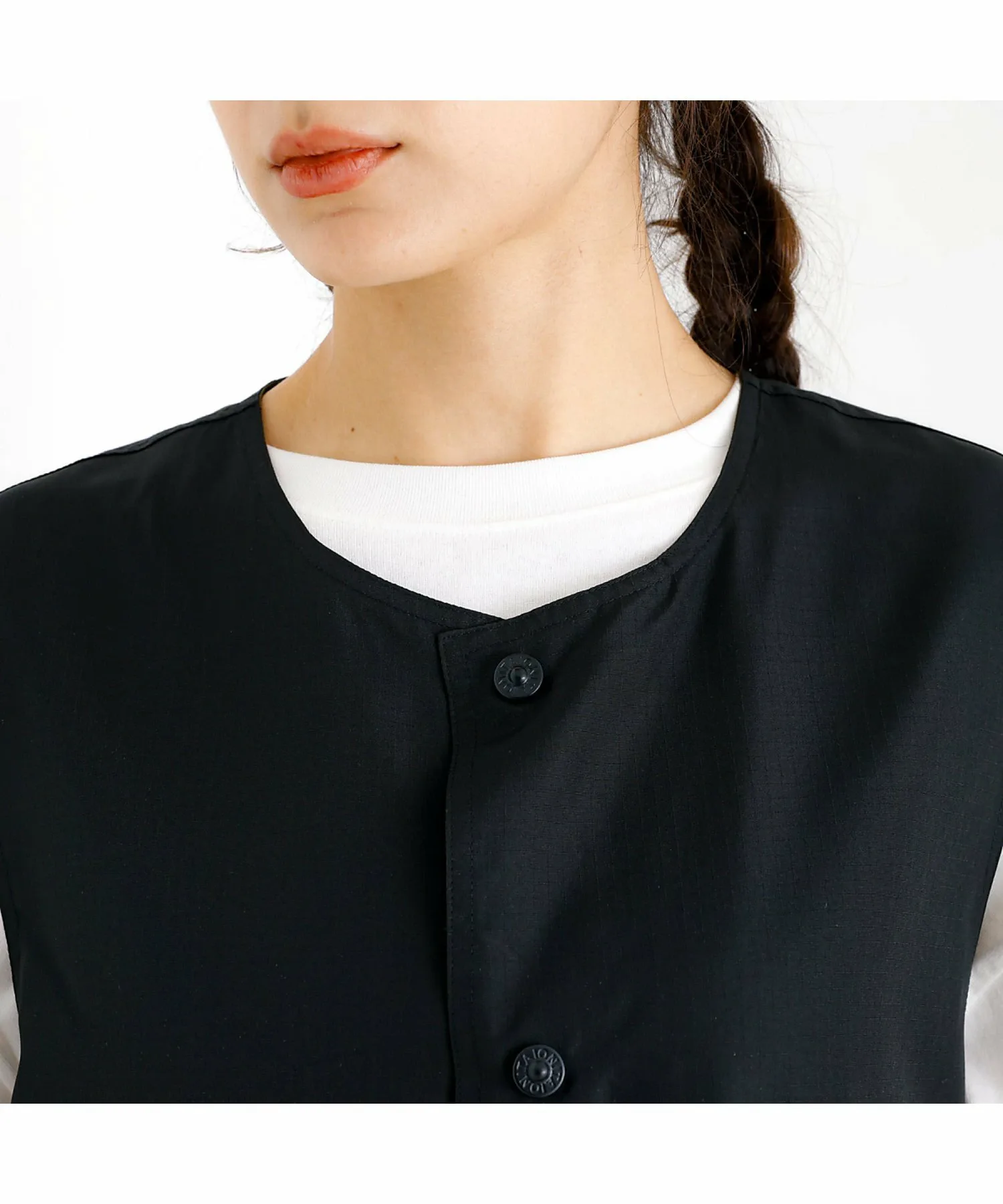 - Круглый вырез спереди позволяет легко сочетать жилет с рубашками, топами и основной верхней одеждой, а боковые пуговицы также служат разрезами.