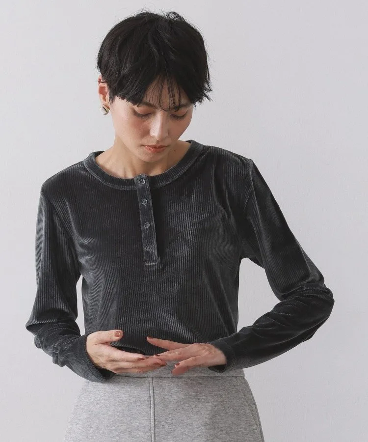Полурубашка-хенли с гладким, бархатистым ребристым воротником.