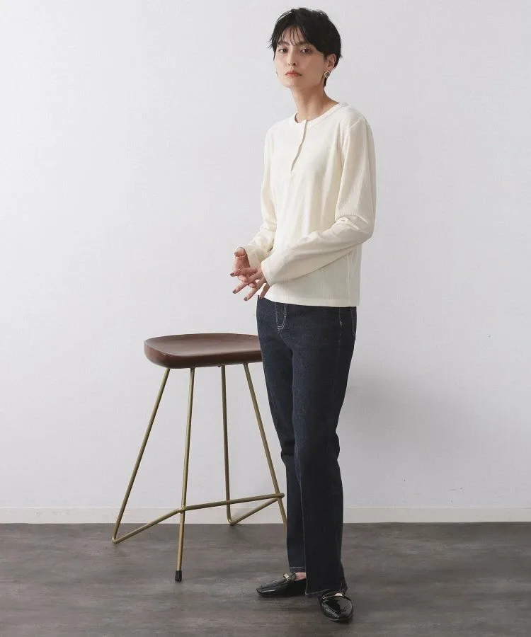 - Воротник-хенли создает расслабленный образ, идеально сочетая в себе повседневность и женственность.