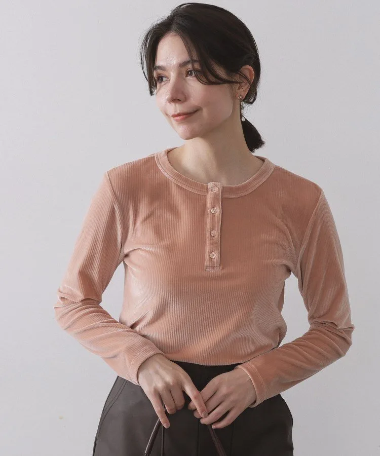 Полурубашка-хенли с гладким, бархатистым ребристым воротником.