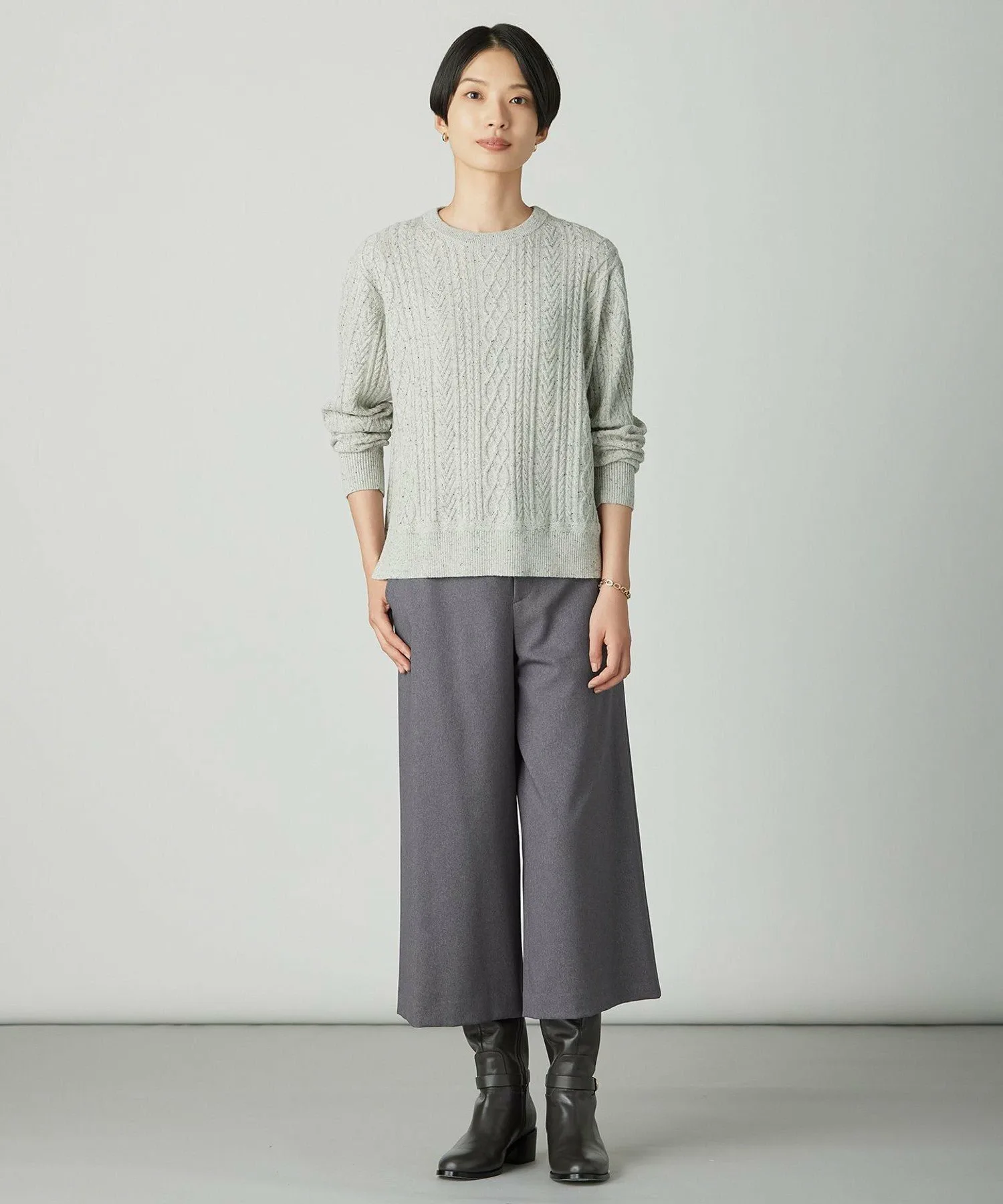 Этот вязаный свитер с круглым вырезом и косами отличается эффектным, смешанным дизайном, идеально подходящим для осени и зимы. Дизайн: Этот свитер с круглым вырезом и косами отличается классическим, но эффектным дизайном. Сохраняя четкий силуэт, трехмерный узор добавляет тепла и элегантности. Он дополняет как традиционные, так и женственные наряды, позволяя создавать разнообразные образы. Доступен в трех цветах: приглушенный светло-серый (#003), натуральный и мягкий бежевый (#033) и изысканный синий (#070). Материал: Эта ткань представляет собой смесь шерсти и шелкового непа, что создает привлекательный смешанный вид. Роскошная текстура шелкового непа дополняет гладкое, нежное прикосновение вискозы, создавая элегантную и комфортную текстуру.
