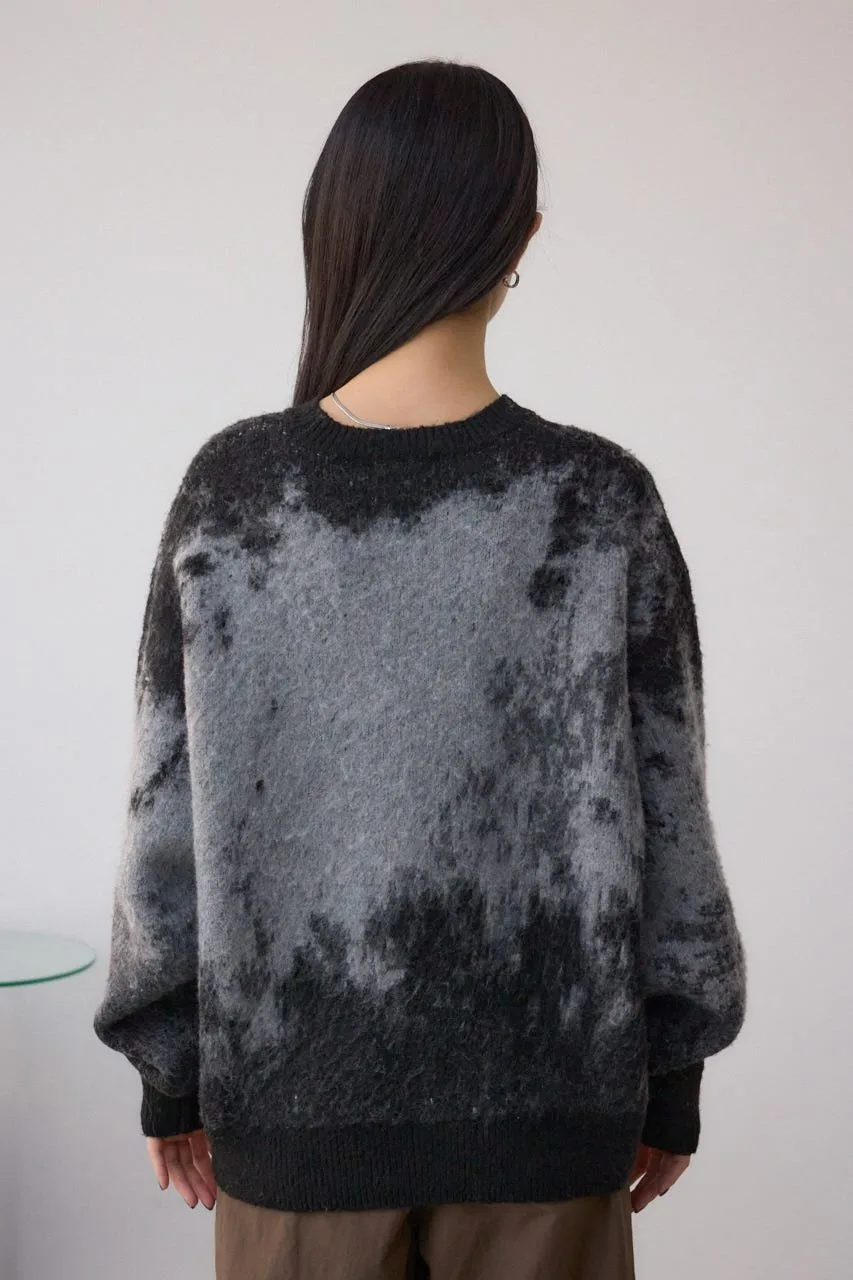 Трикотажный пуловер с жаккардовым узором, созданным с помощью пушистой пряжи.
