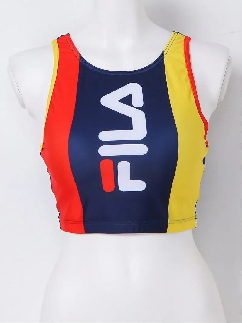 Топ-бюстгальтер с контрастными цветовыми блоками, U-образной спинкой, прострочкой чашечек и немного удлиненным кроем. Большая площадь поддержки делает его удобным для обладательниц большой груди. Эффектное сочетание цветов, как у FILA, производит сильное впечатление. Идеально подходит для любого вида спорта.