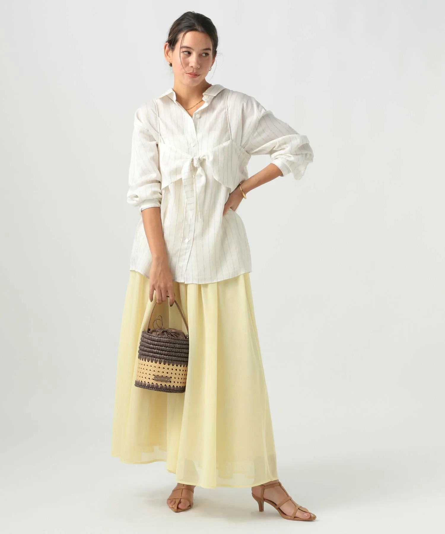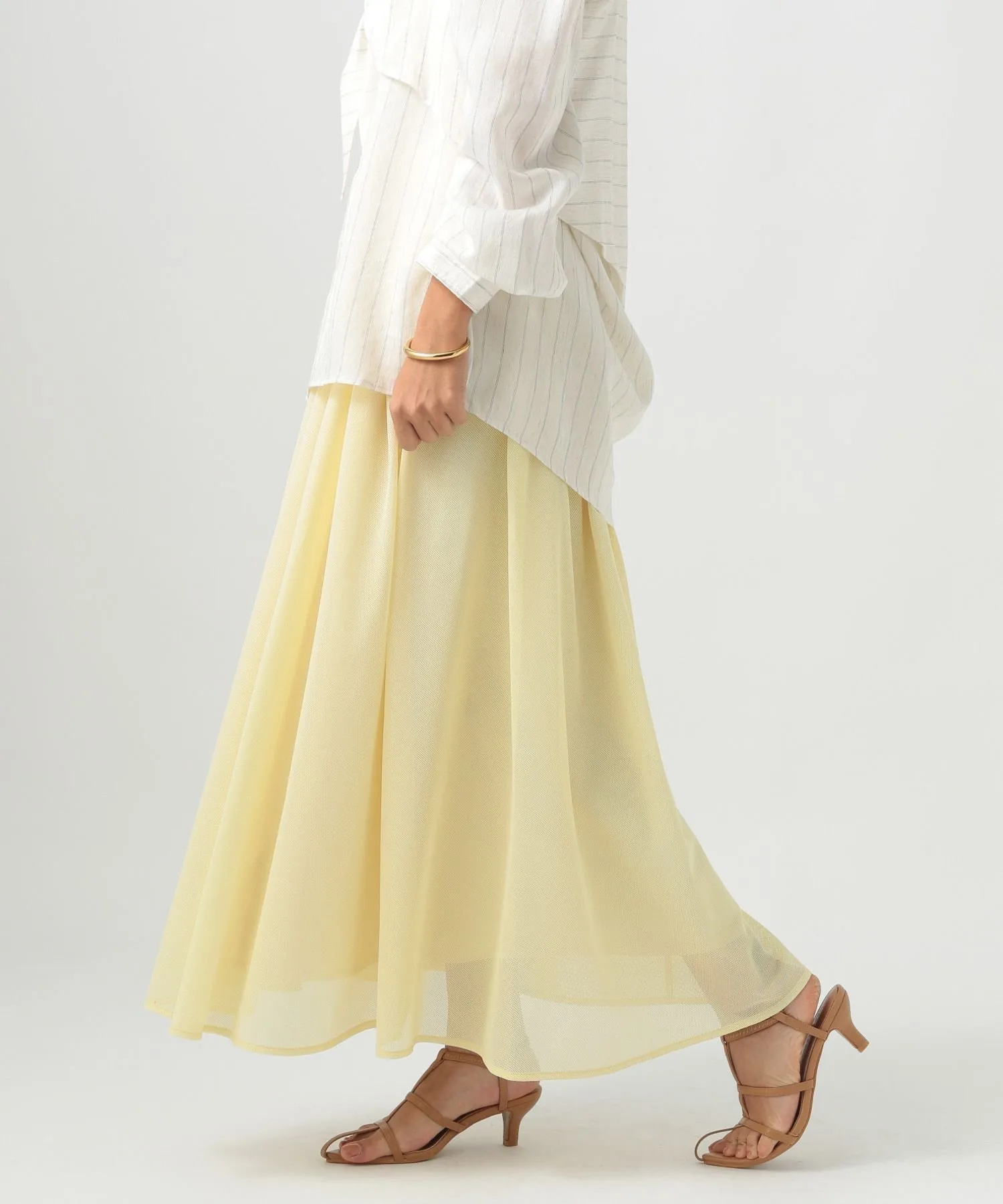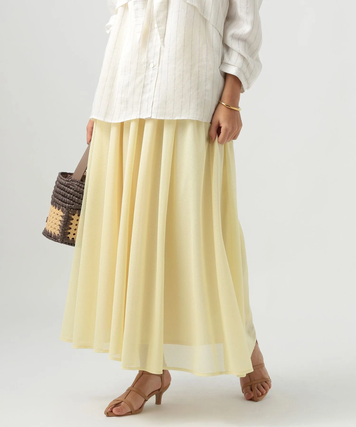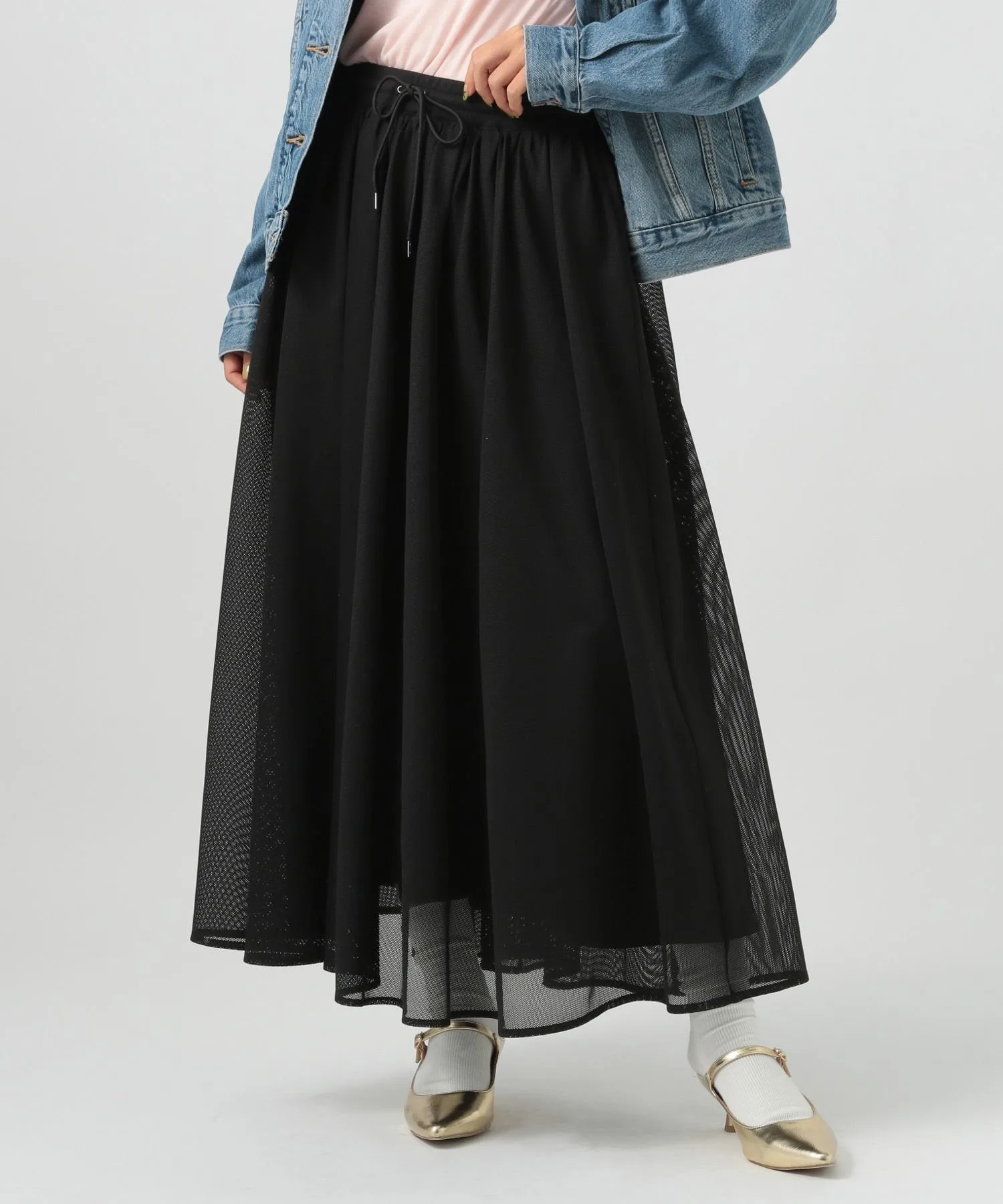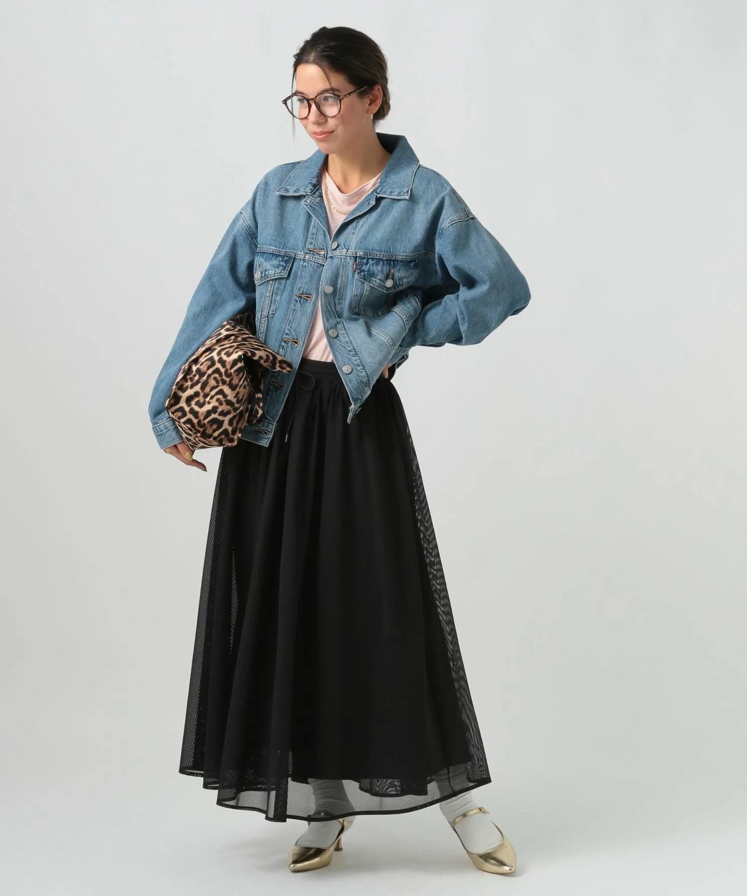 Более крупная сетка создала бы более модный образ, но здесь очень тонкая сетка, поэтому текстуру легко вписать в образ.