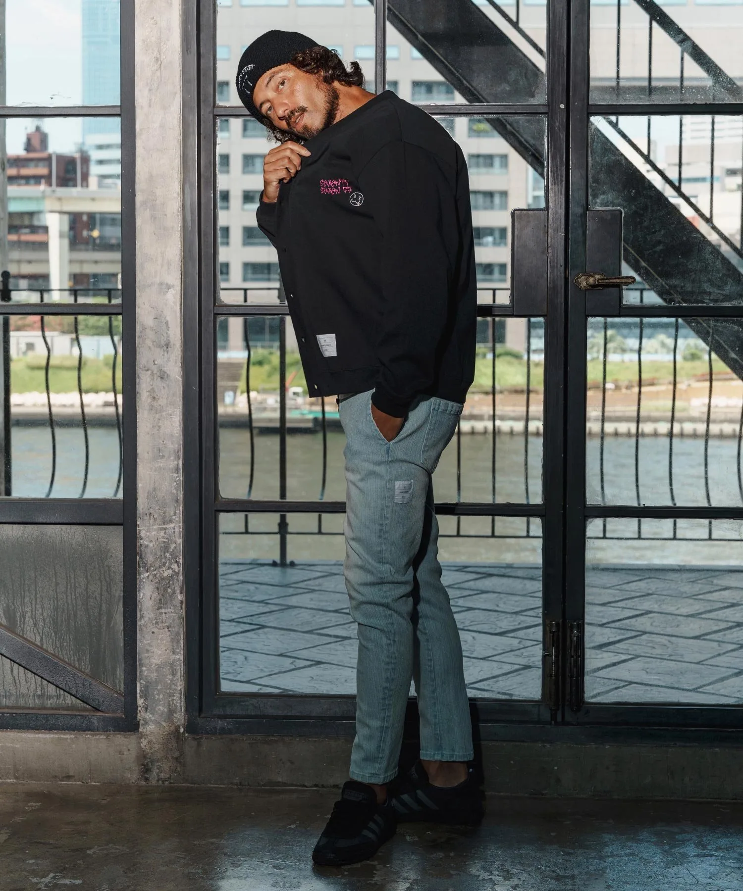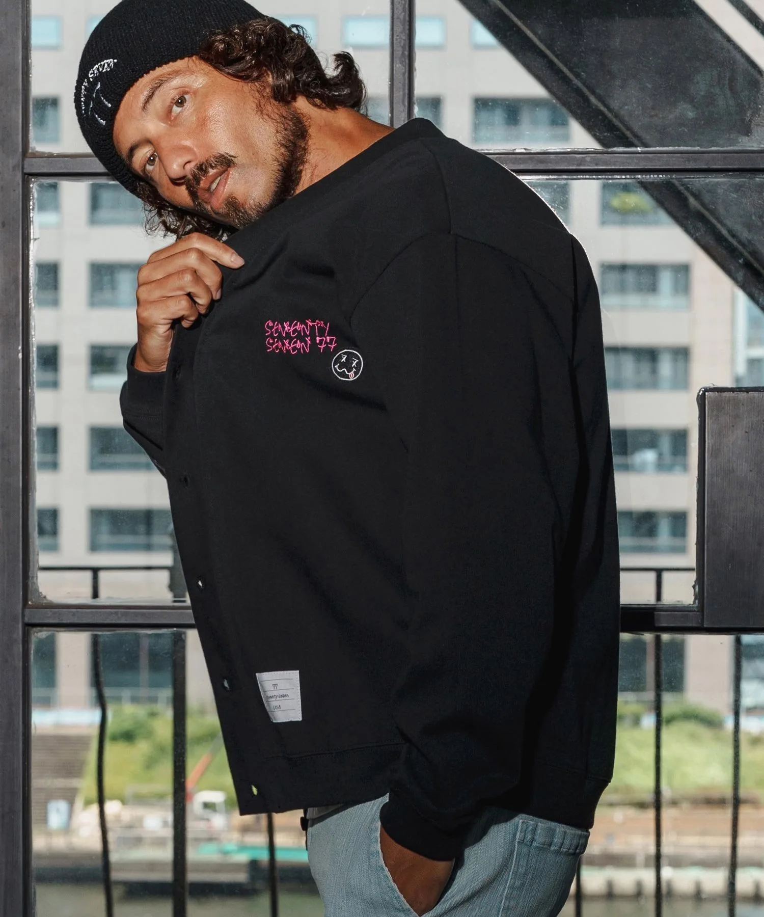 Квадратная нашивка с логотипом расположена на конце рукава.