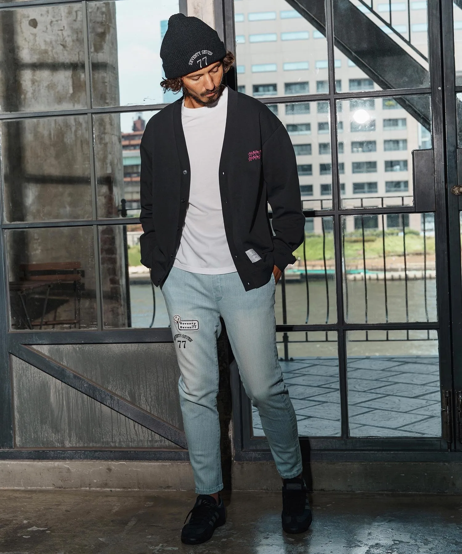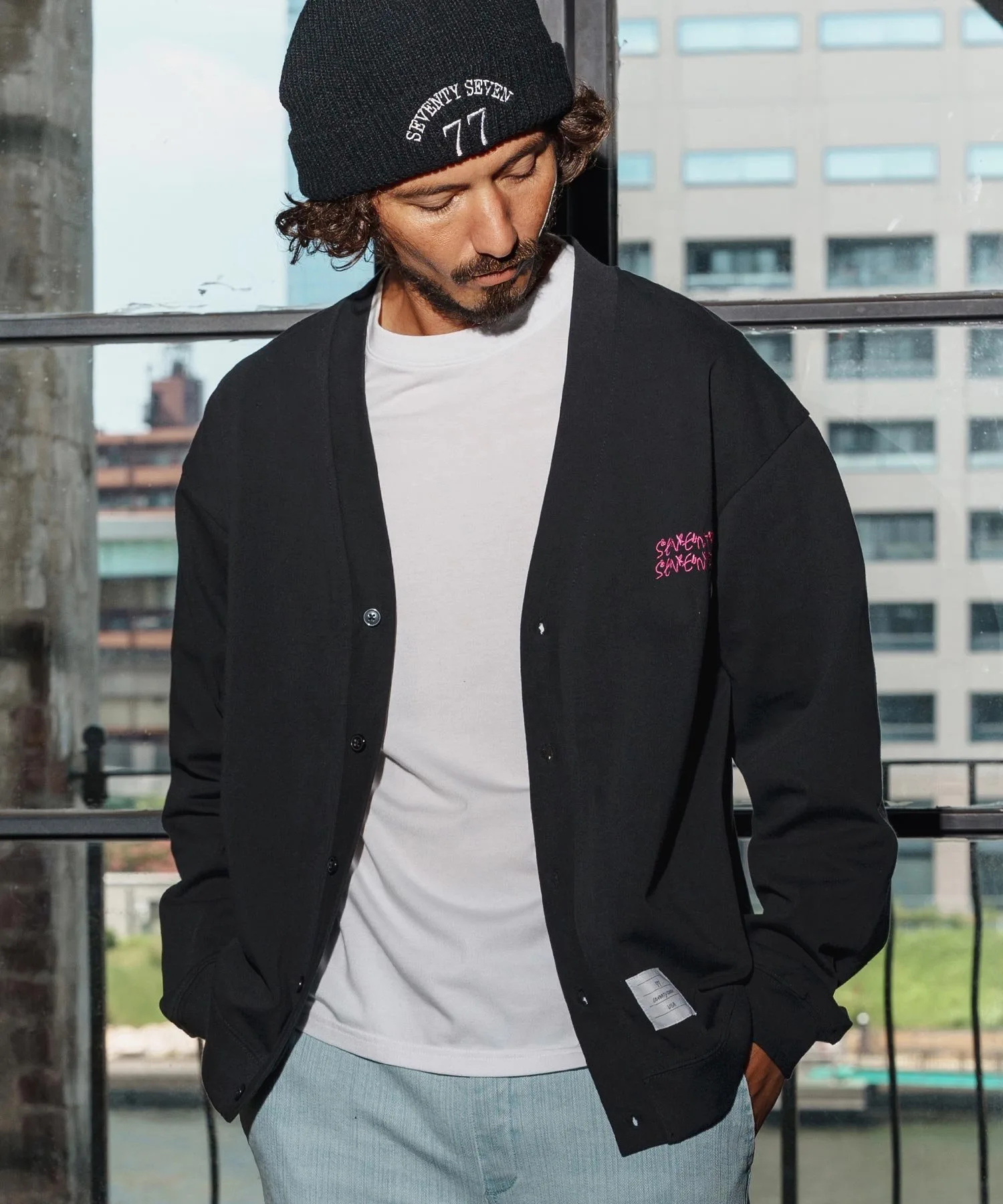 Кардиган из трикотажной ткани средней плотности.