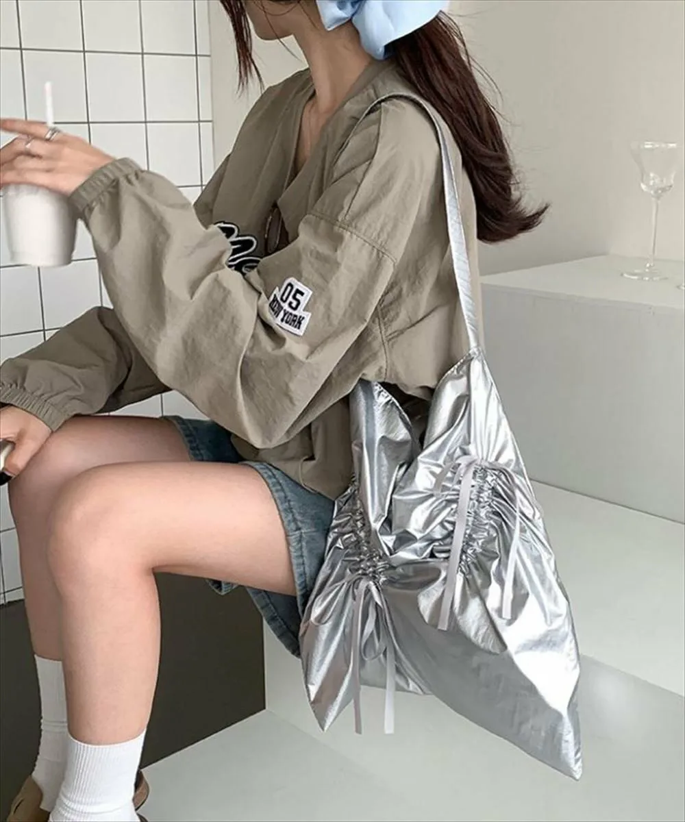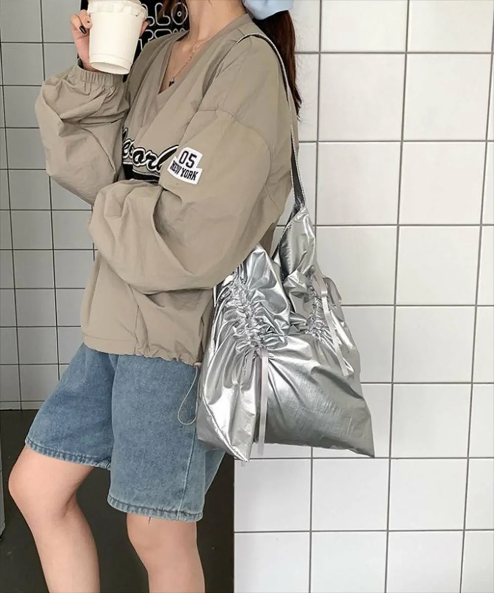 Элегантная сумка-тоут с лентой и сборками. Модная сумка со сборками из ленты, сочетающая в себе непринужденный и милый стиль. Легкая и удобная в переноске, она также может использоваться как дополнительная сумка. Идеальный размер, не слишком большая, позволяет легко поместить кошелек, носовой платок, бутылку с водой и другие необходимые вещи для короткой прогулки. Материал: 100% полиэстер