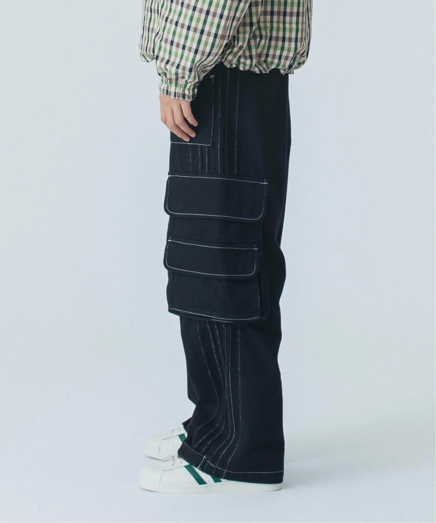 - Брюки-карго с оригинальными деталями и карманами с обеих сторон.
