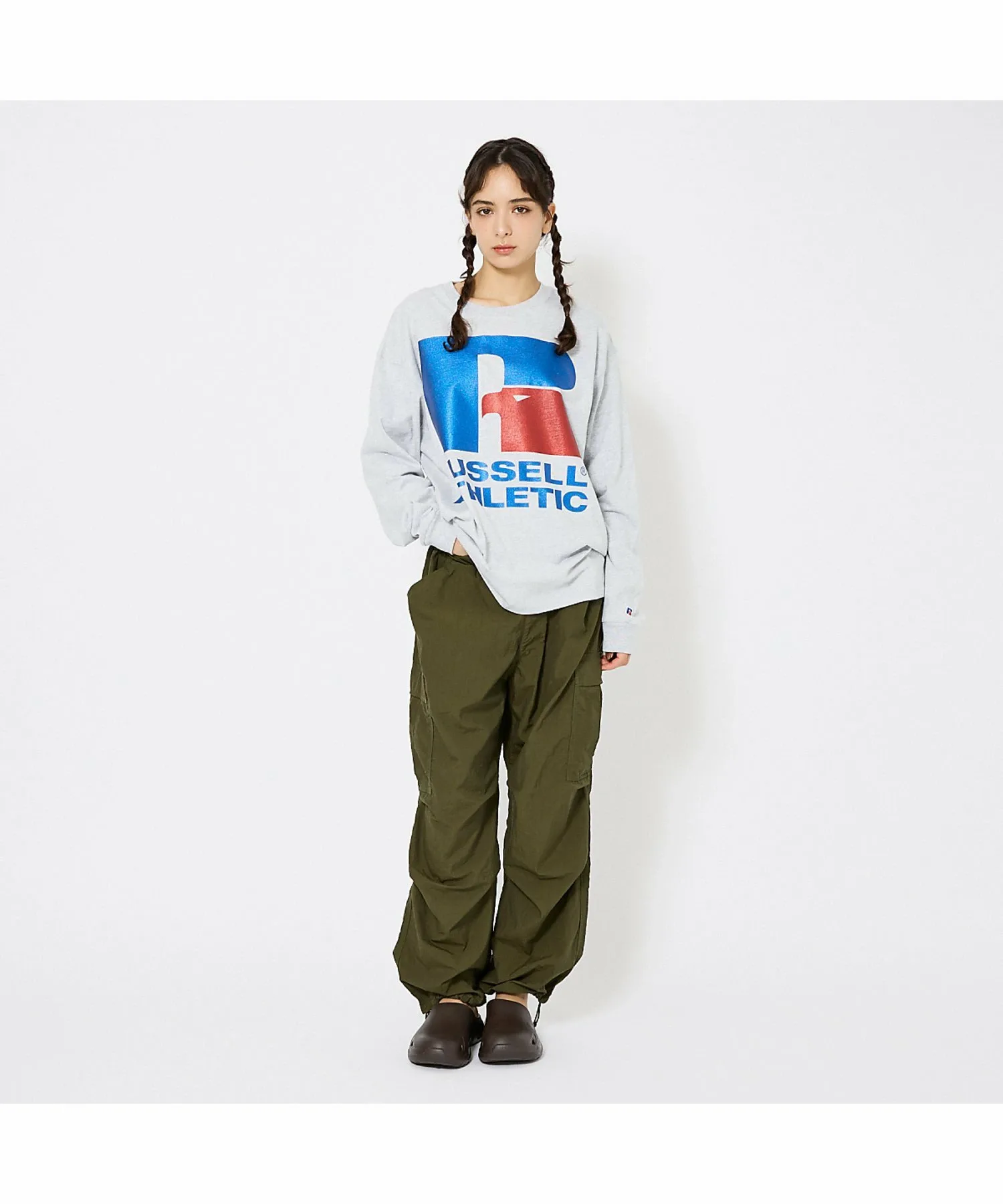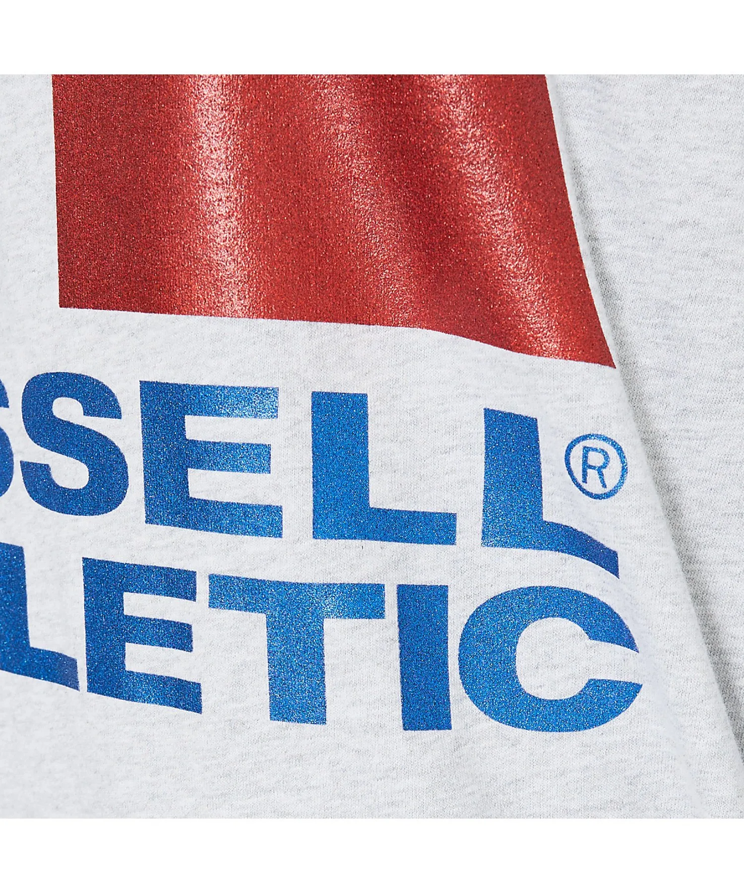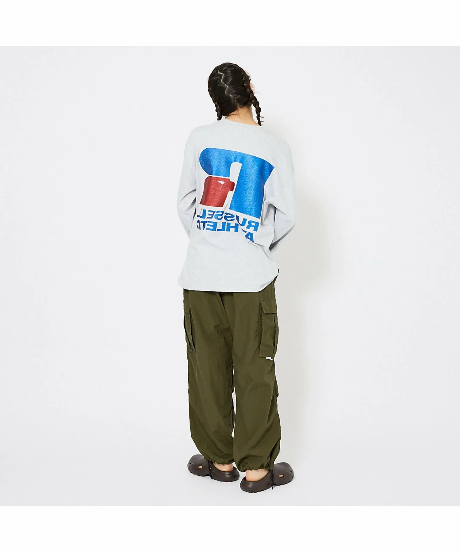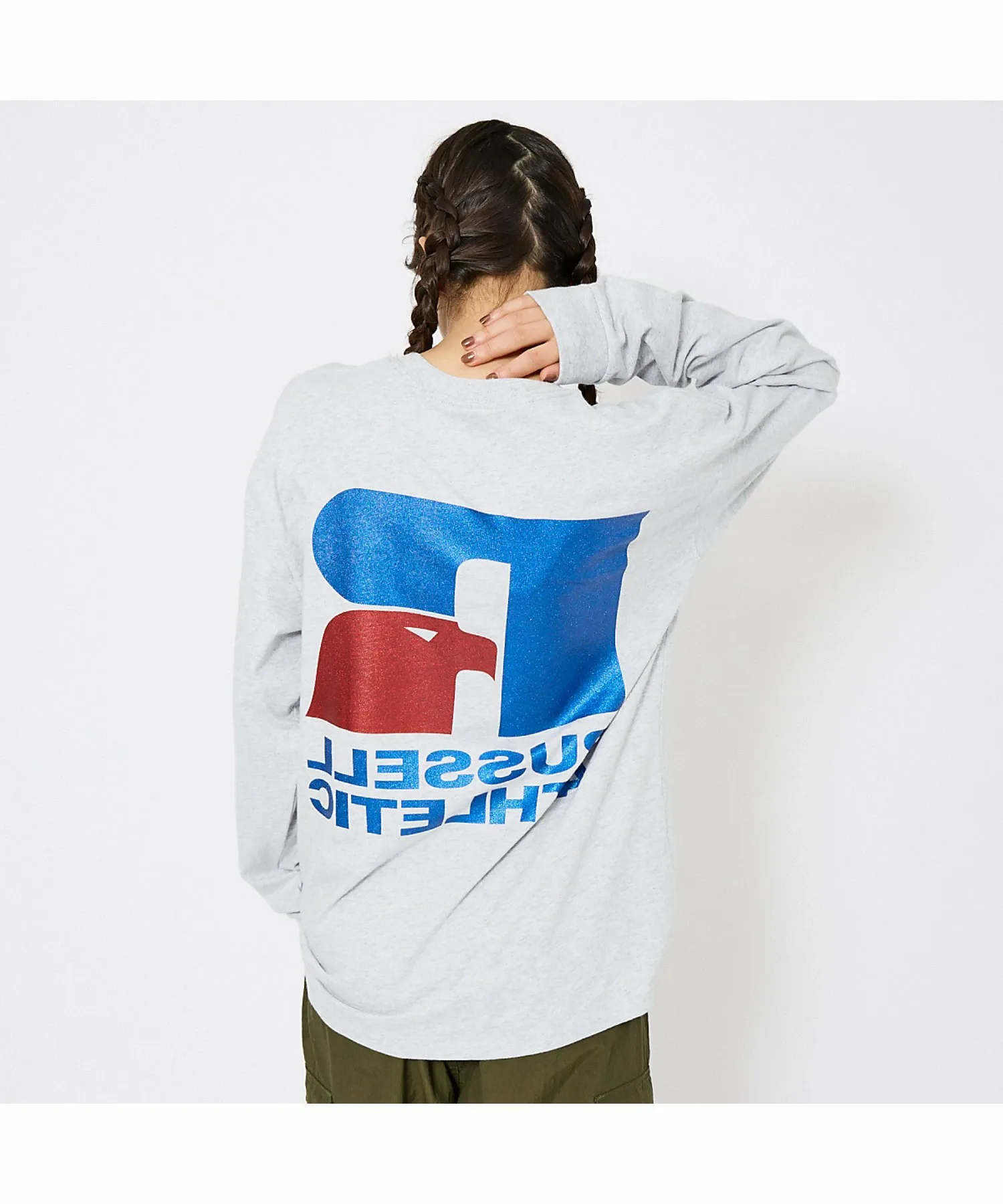 От JACKSONMATISSE… Футболка с длинными рукавами в сотрудничестве с RUSSELLATHLETIC. Ее передняя и задняя части подсвечиваются, даже свет станет вашим союзником. Представляем футболку с длинными рукавами, созданную в рамках коллаборации **JACKSONMATISSE x RUSSELLATHLETIC**. Помимо двустороннего принта спереди и сзади, блестящий принт, переливающийся под разными углами, создает потрясающий эффект. Она сочетает в себе винтажный дизайн и легкость спортивного стиля. Универсальный дизайн делает ее подходящей для самых разных стилей, от уличного до повседневного. Свободный силуэт делает эту универсальную футболку с длинными рукавами отличной как для самостоятельного ношения, так и в качестве нижнего слоя под куртку или рубашку. Будь то уличная мода, фестивали или повседневная одежда, это вещь, которая сделает вас центром внимания в любой ситуации.