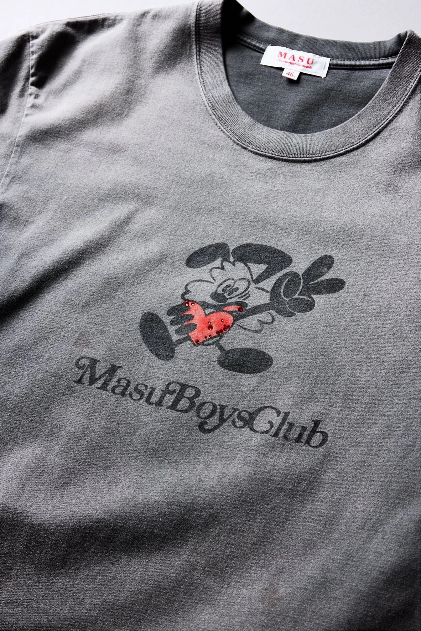 Выцветший принт и стразы расположены в сбалансированном порядке.