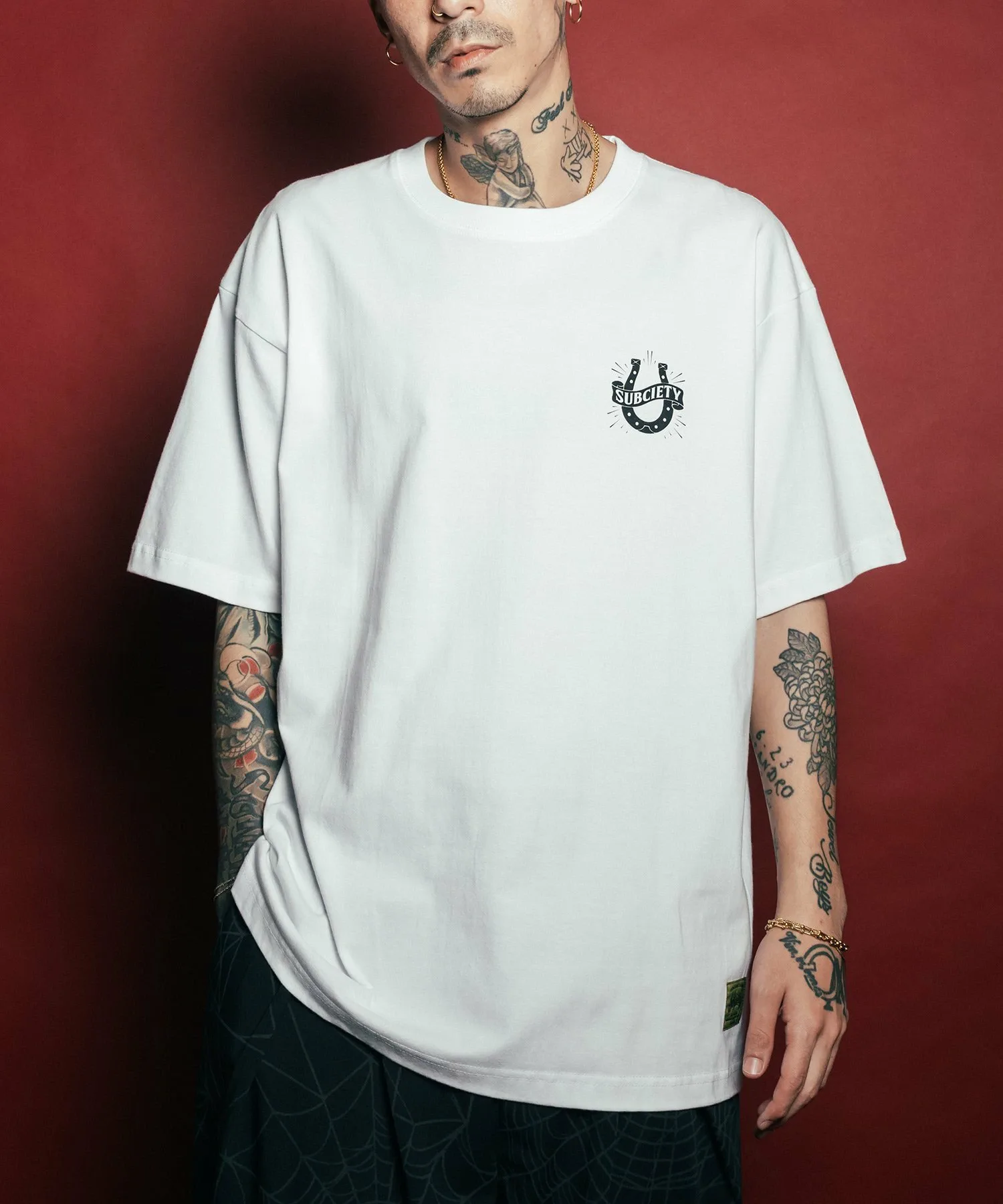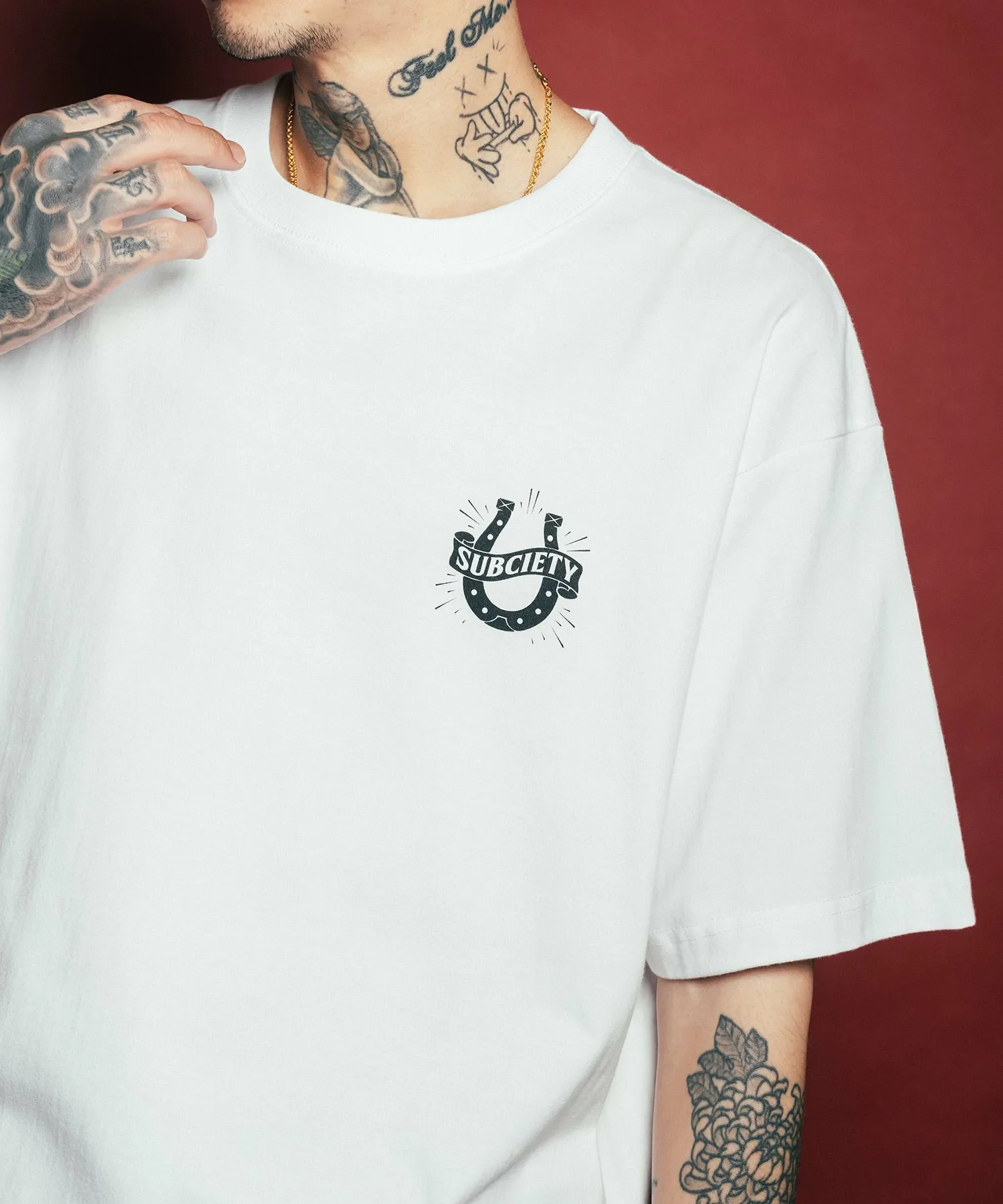 На левой стороне груди напечатан простой, но эффектный дизайн, сочетающий логотип бренда и копытце лошади.
