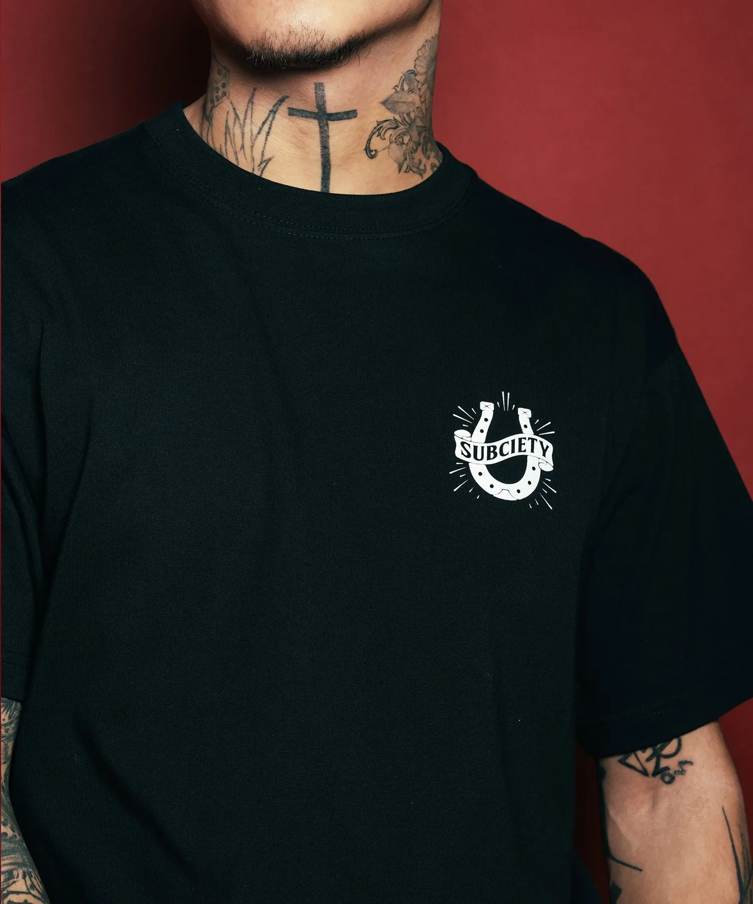 На левой стороне груди напечатан простой, но эффектный дизайн, сочетающий логотип бренда и копытце лошади.