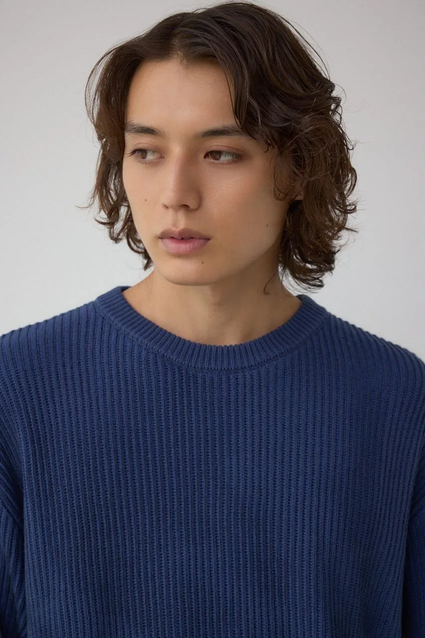 Этот трикотаж в рубчик украшен оригинальным принтом AZUL, выполненным в технике распыления по всей поверхности.