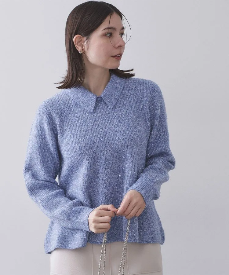 Элегантный вязаный пуловер с баской и блестками