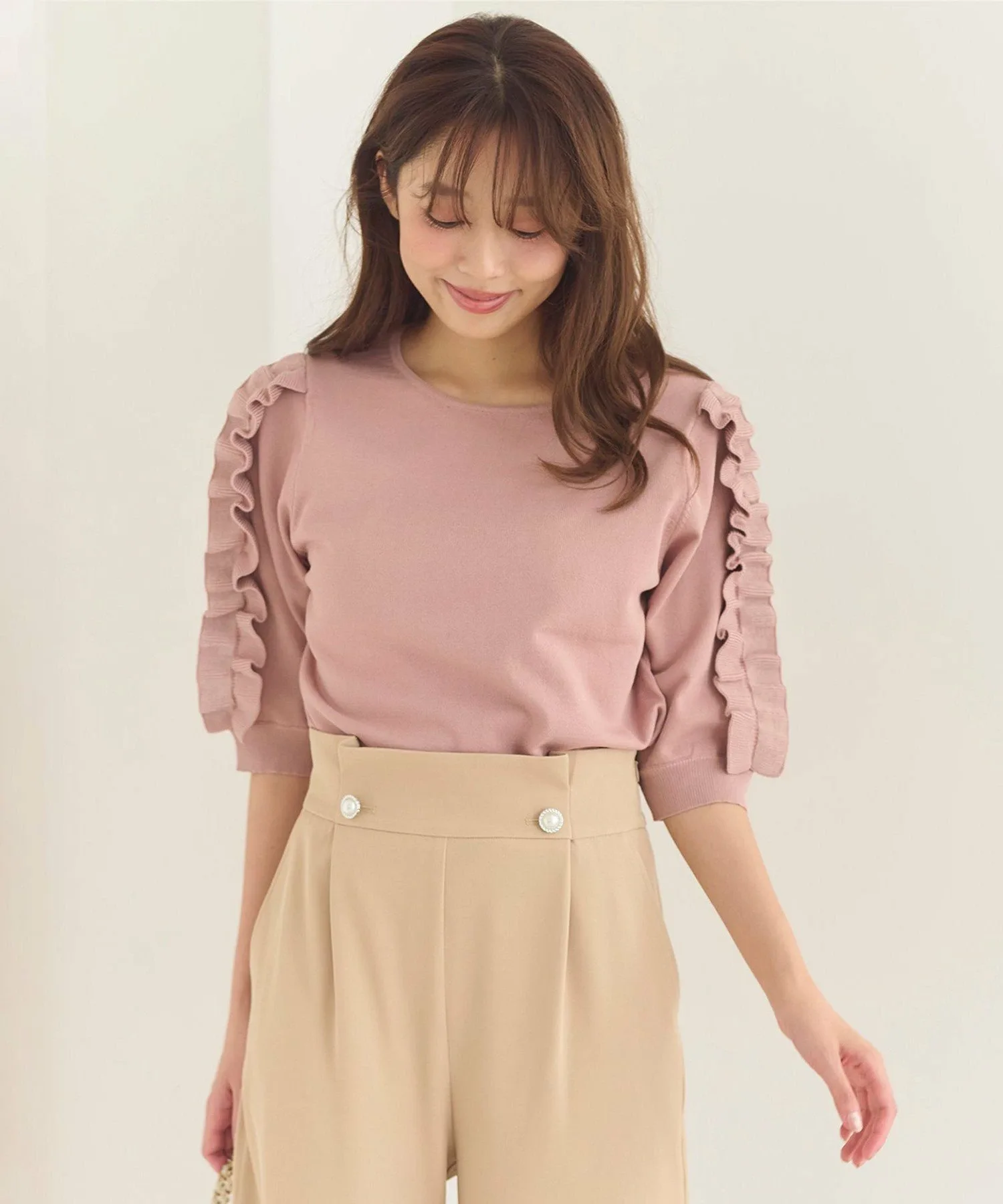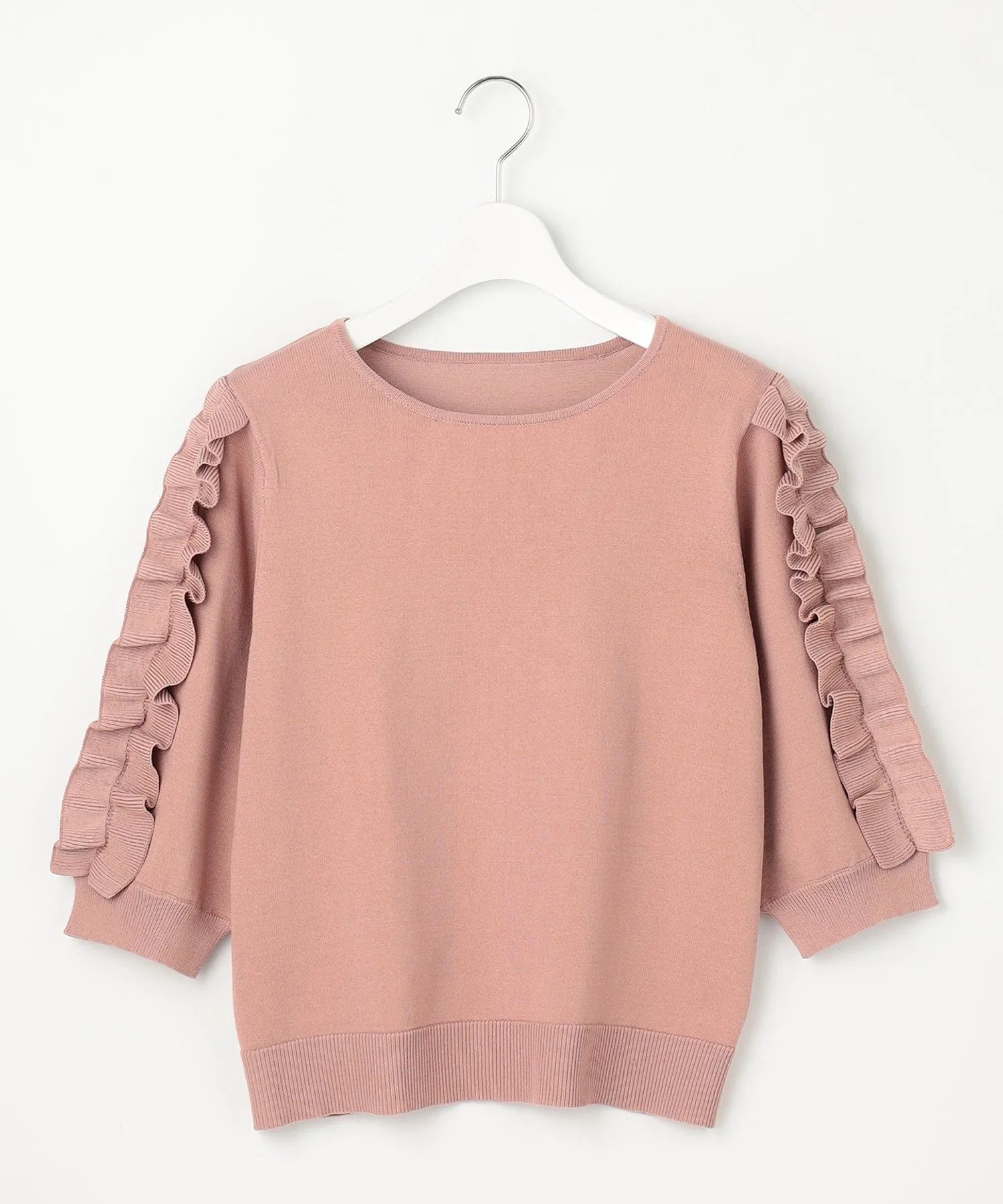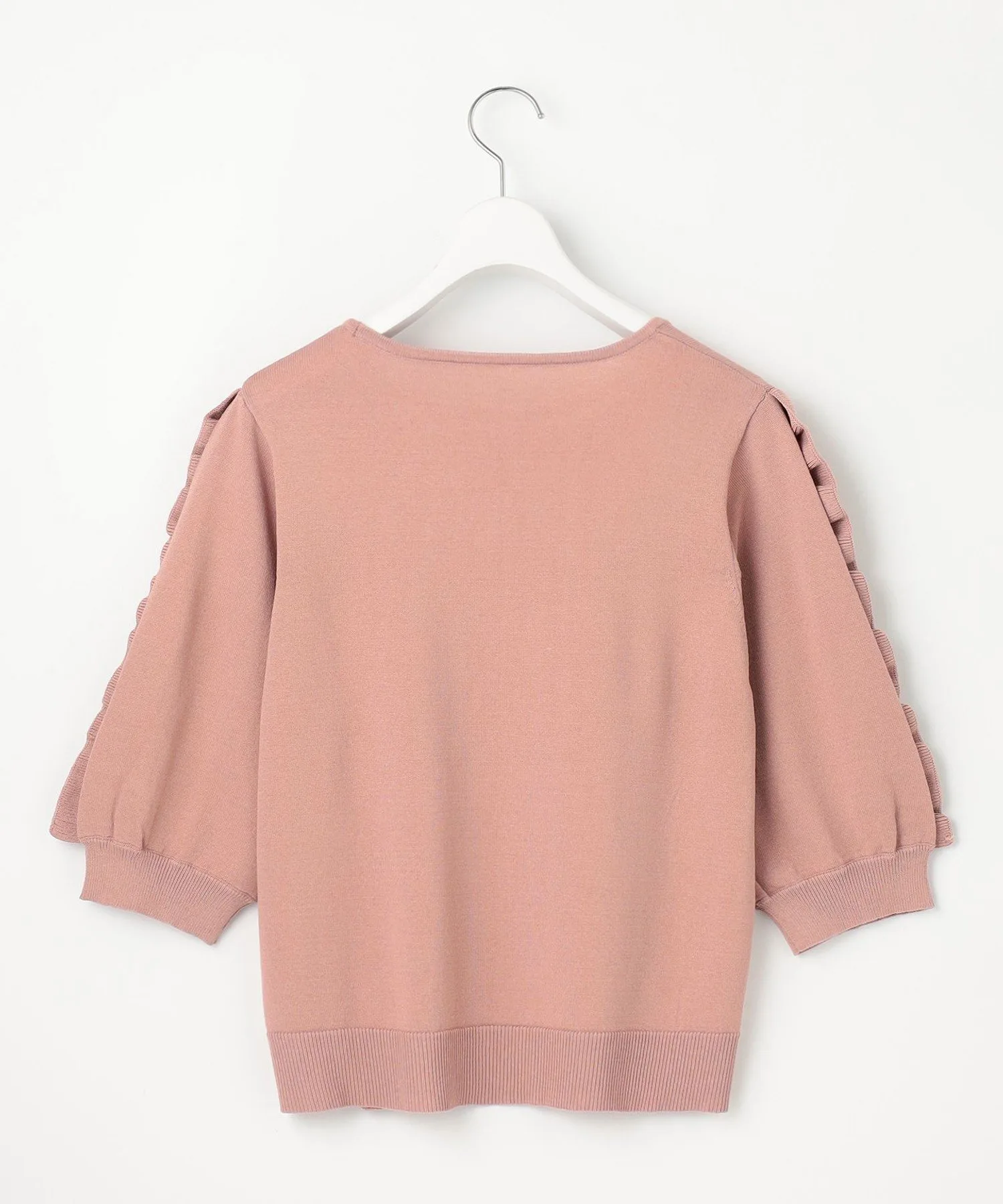 Милый вязаный топ с эффектными оборками на рукавах. Доступен в широком диапазоне сдержанных цветов, включая нежный серо-бежевый, насыщенный розовый и черный, который смягчает сладость. Свободный крой делает его удобным в ношении и хорошо сочетается как с юбками, так и с брюками. Это очень рекомендуемый дизайн вязаного топа, который легко может наскучить.