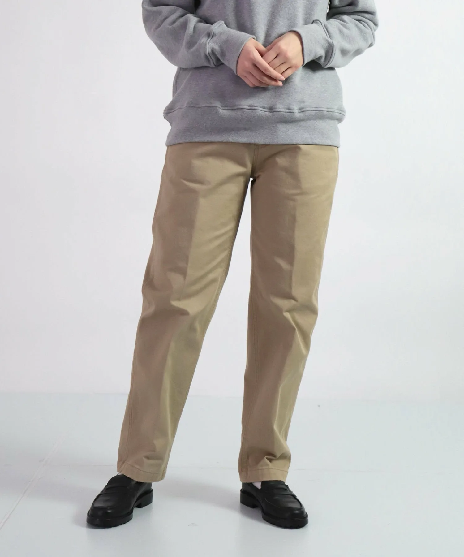 ◇ Отзыв о ношенииРычаг 157 см / Размер SSЭти брюки-чинос имеют обтекаемый дизайн и являются базовой моделью. Полная длина немного длинновата для меня, но я могу носить их, не подворачивая.Талия в самый раз, с небольшим запасом в бедрах и ягодицах.