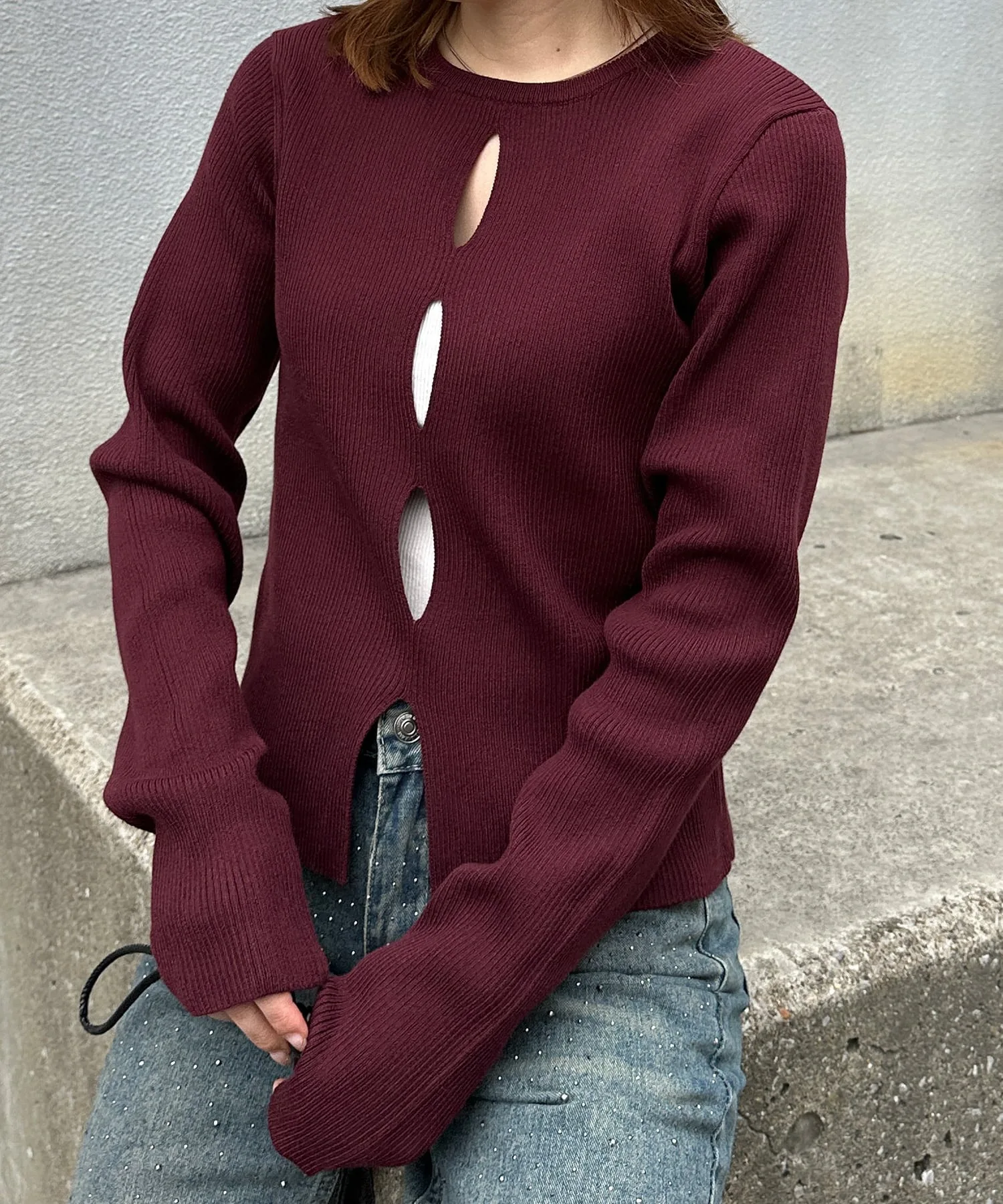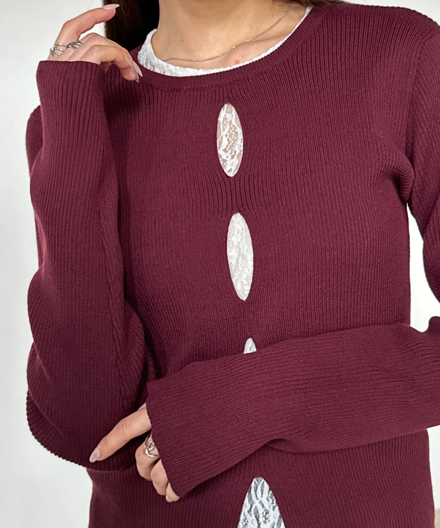 - Трикотажный топ с перфорацией спереди, демонстрирующий достаточное количество кожи