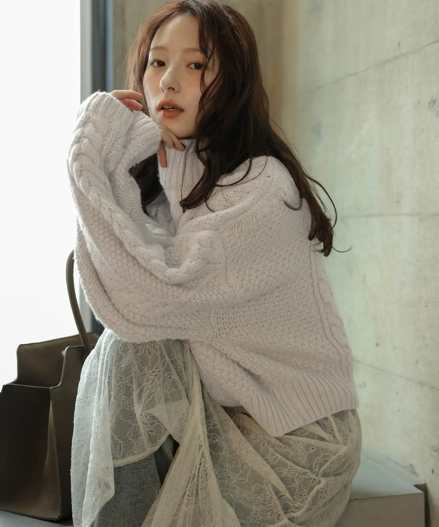 Плотная, мягкая вязка создает объемный силуэт.