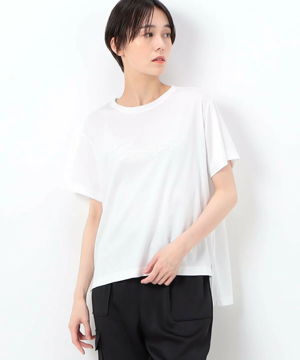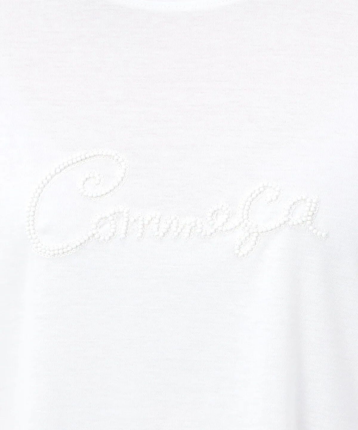 Эта футболка украшена вышитым на груди логотипом Comme Ca, выполненным из бисера и пайеток.