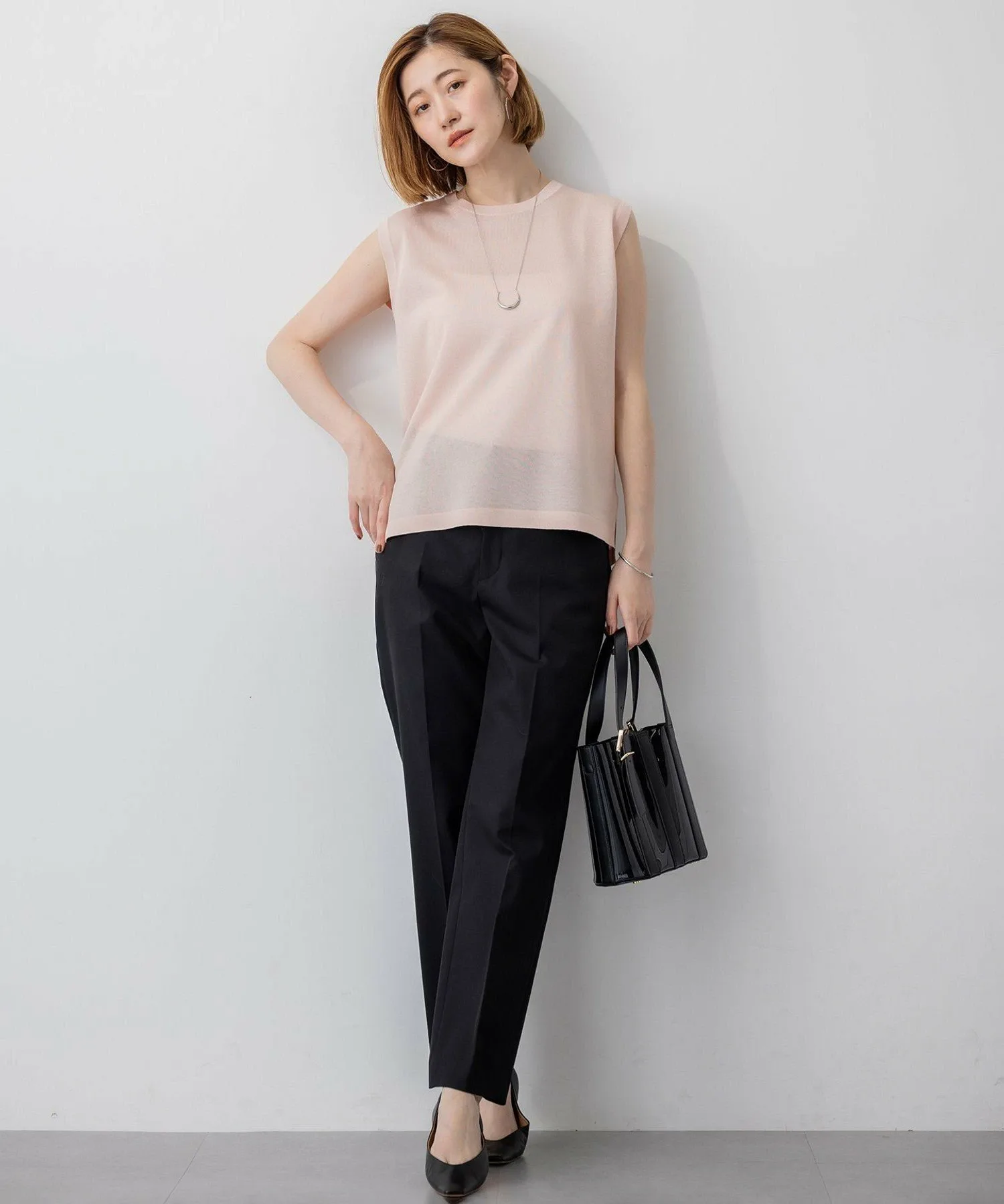 Пуловер без рукавов из трикотажа. Немного более плотная ткань уменьшает прозрачность. Он не подчеркивает линии тела, поэтому его можно носить как самостоятельно, так и в сочетании с платьем-майкой или комбинезоном. Он прост, но универсален. Доступен в пяти цветах: спокойный цвет слоновой кости (#003), базовый черный (#005), мягкий бежевый (#033), изысканный темно-коричневый (#035) и новый, женственный, бледно-розовый (#012).