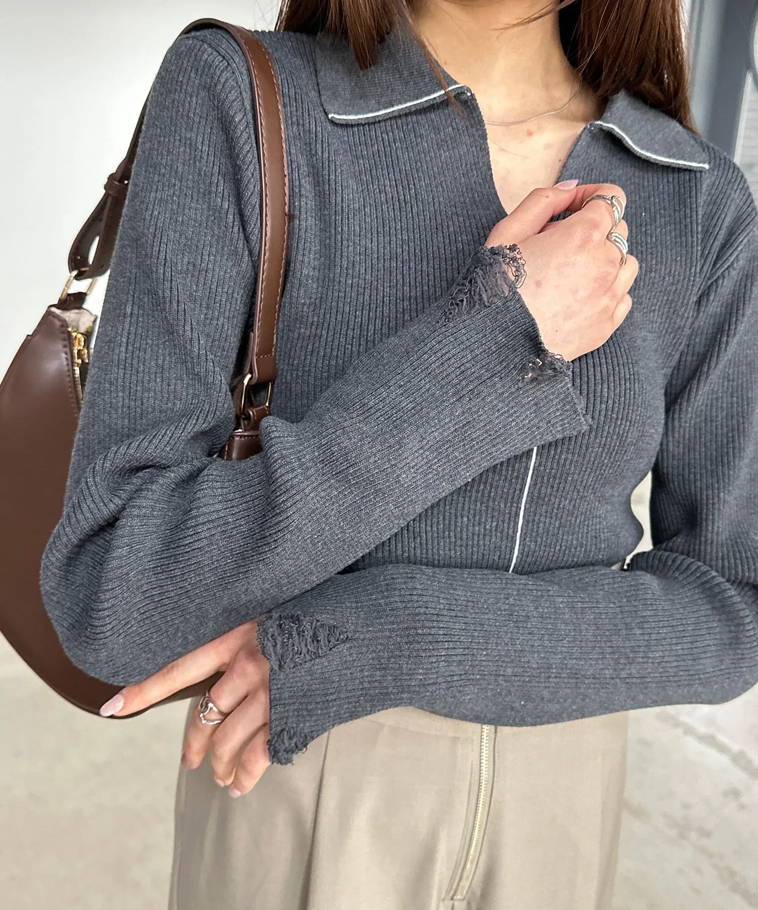 - Потертые рукава и линии в тон на передней части добавляют акценты.