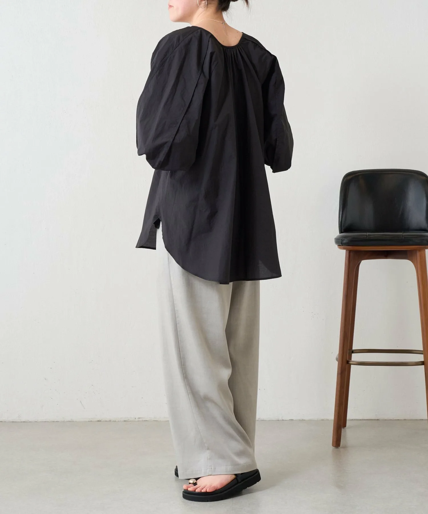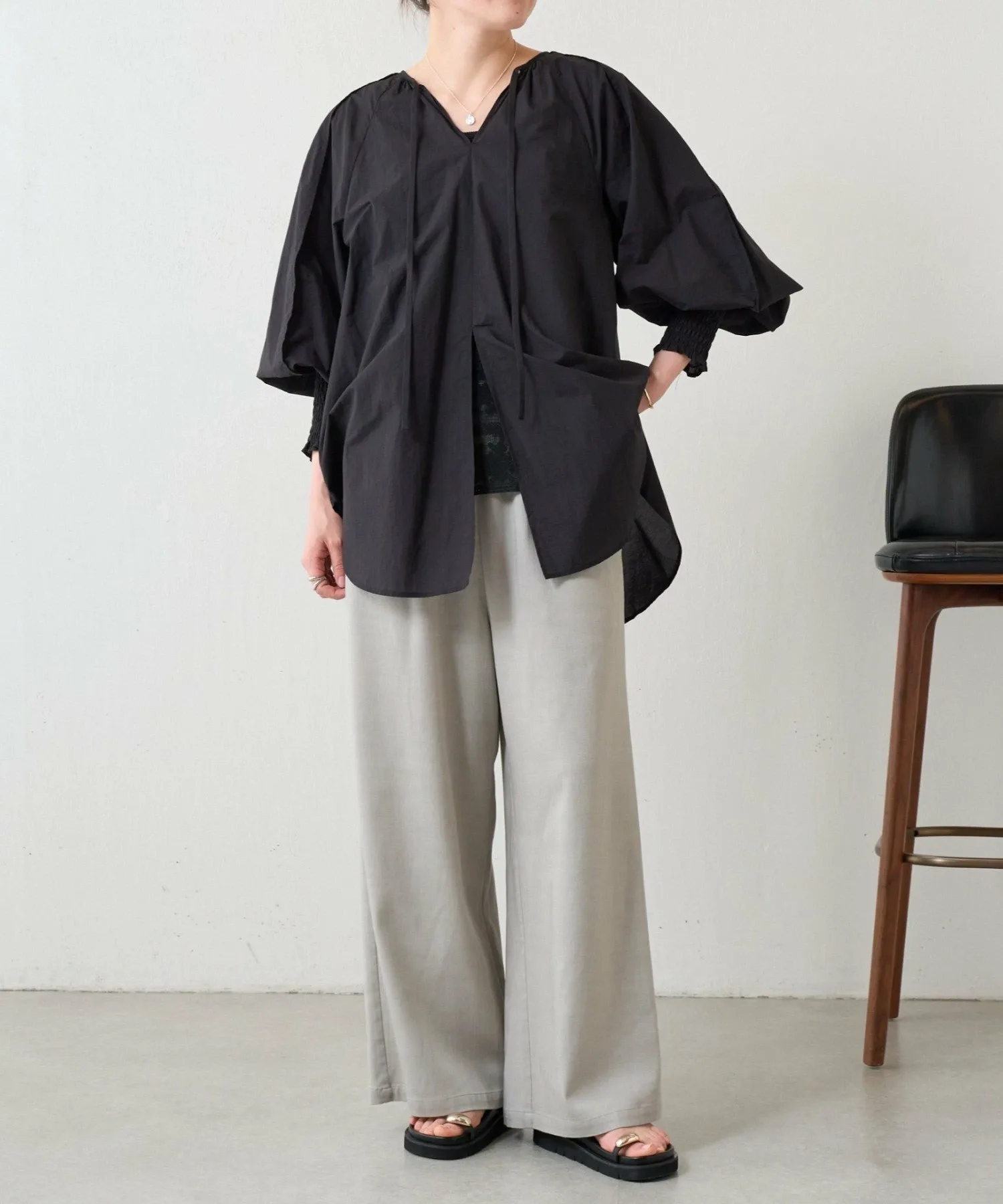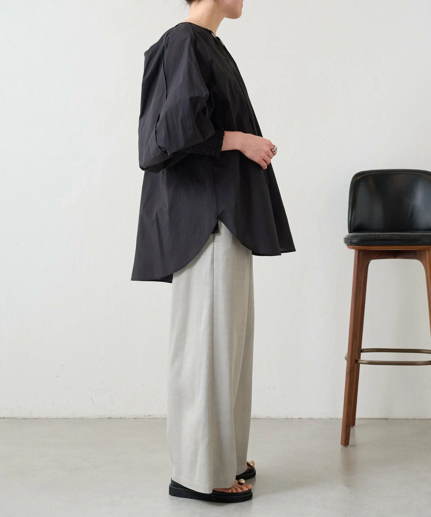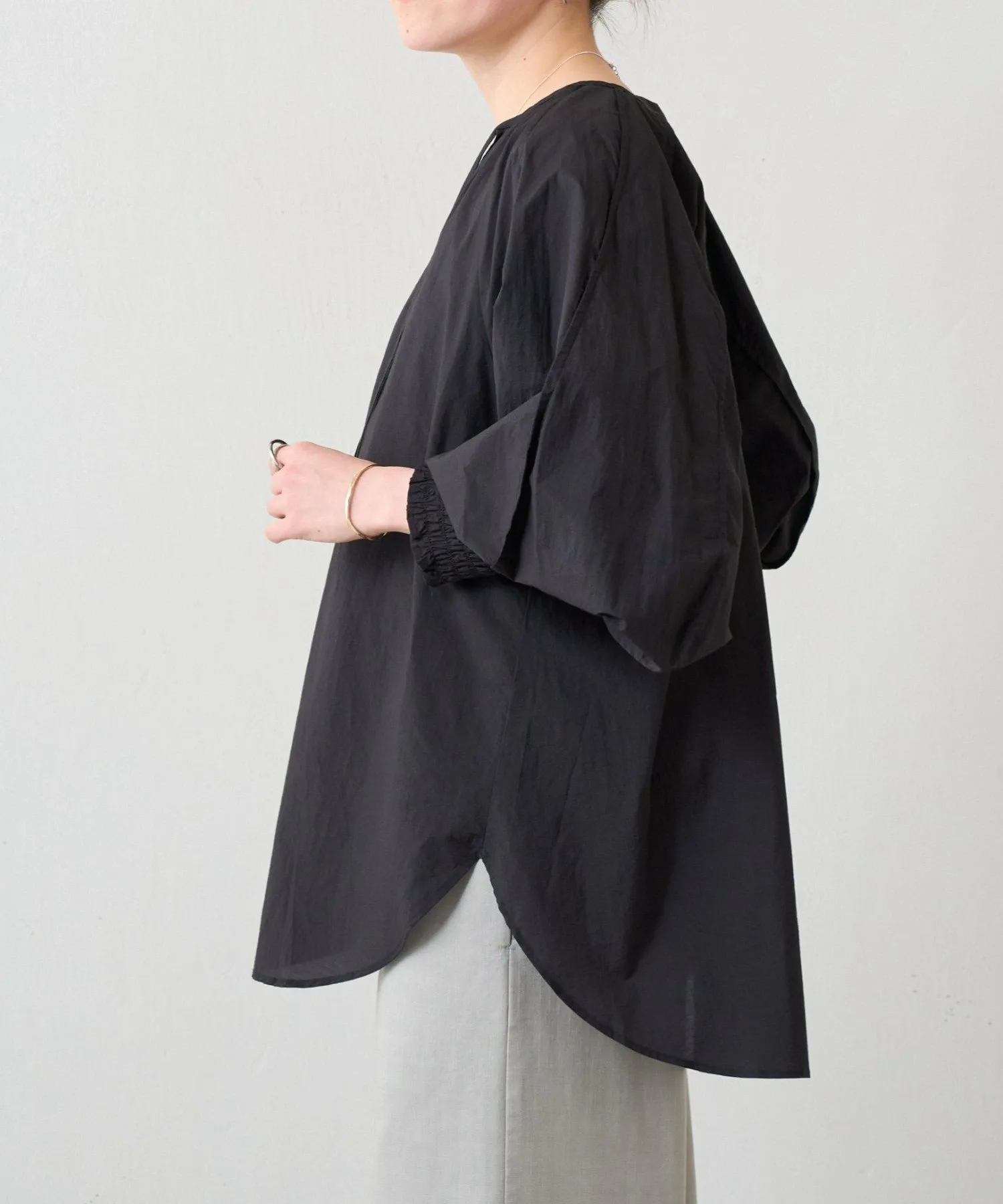 Присборенные манжеты и мягкие, объемные рукава-летучая мышь создают простой, но в то же время непринужденно выразительный дизайн.