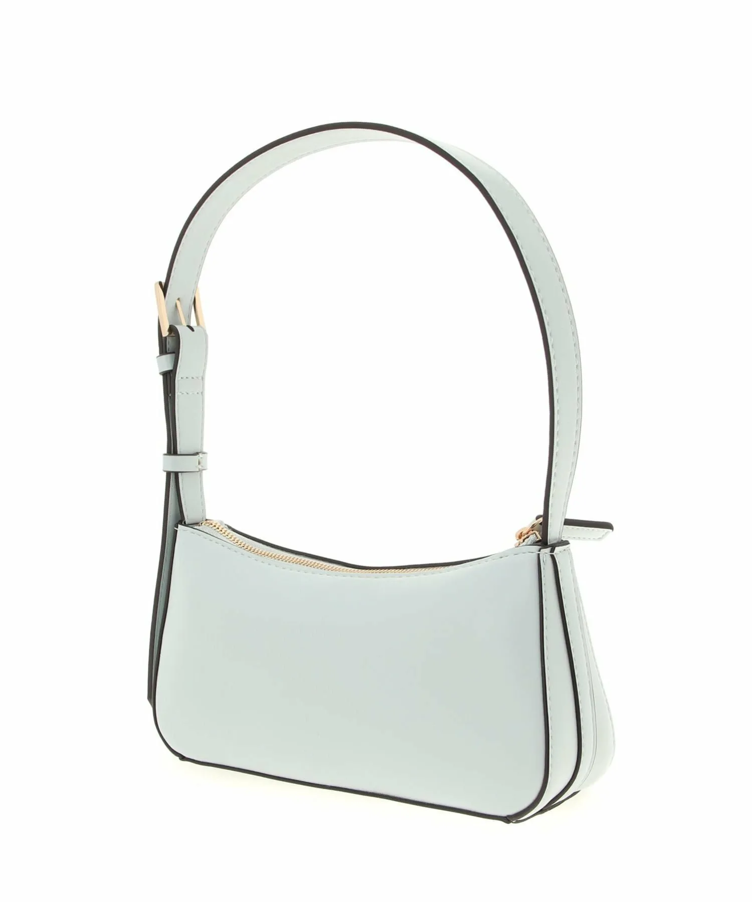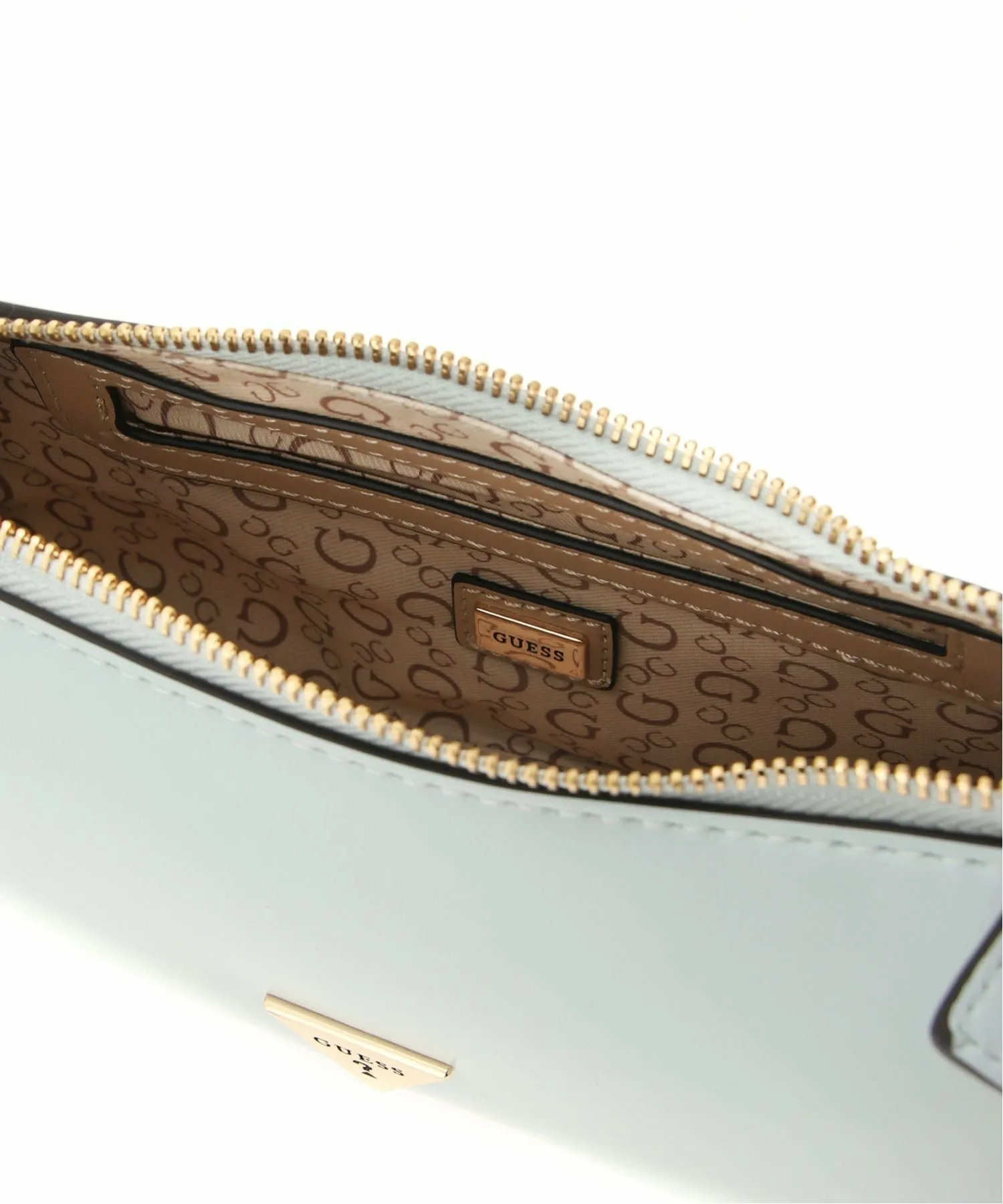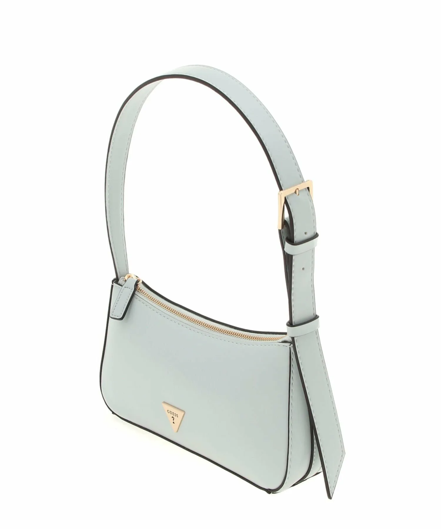 Милая мини-сумочка через плечо нежных пастельных тонов, украшенная золотым треугольным логотипом.