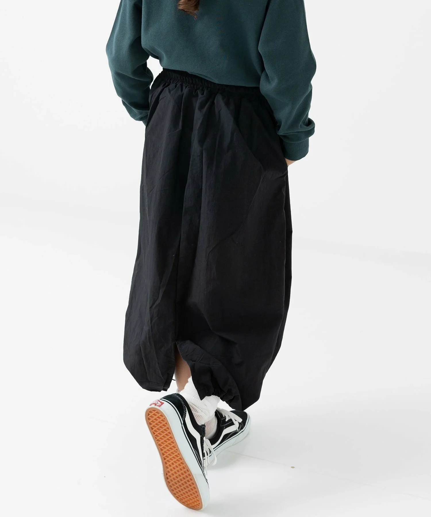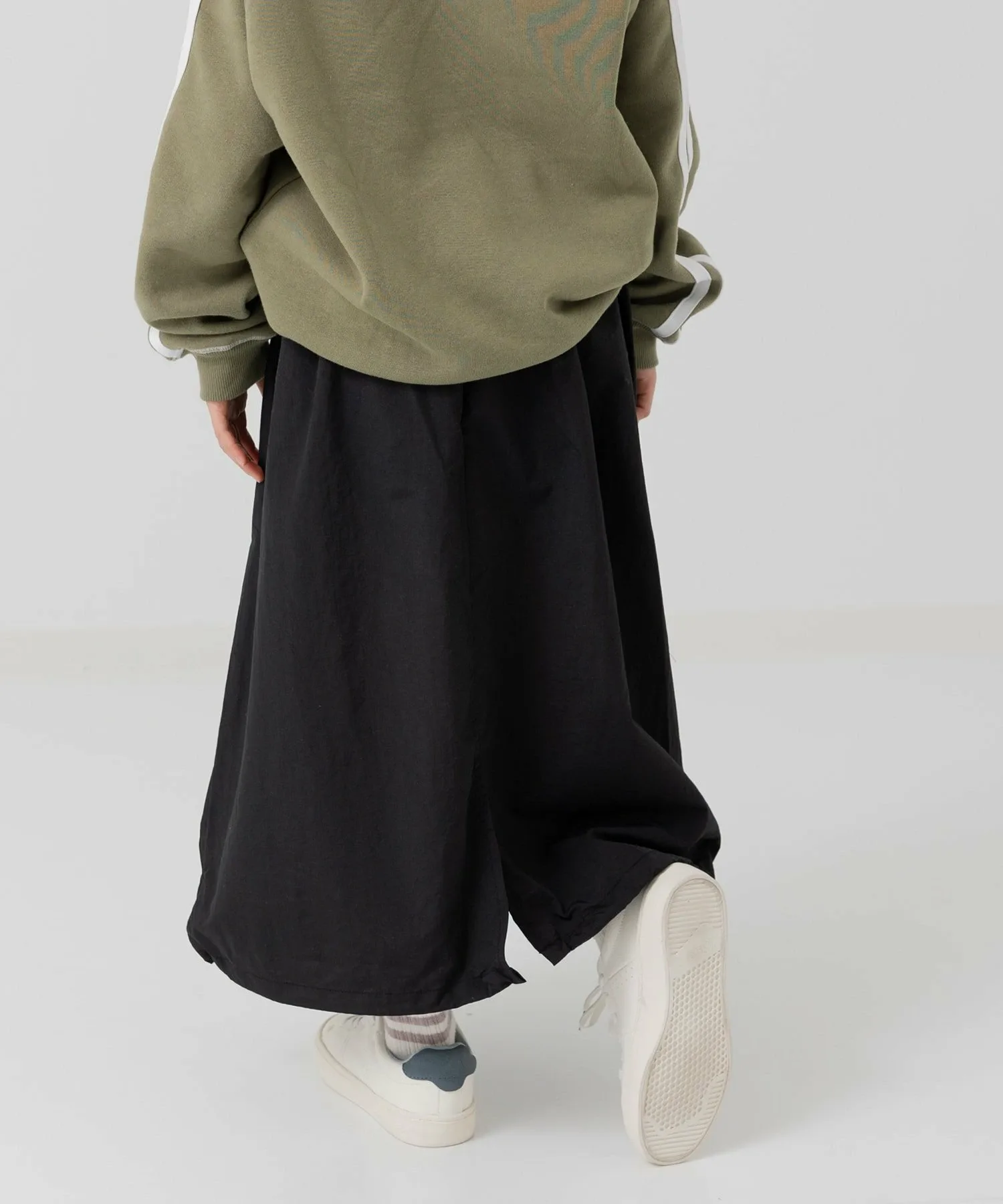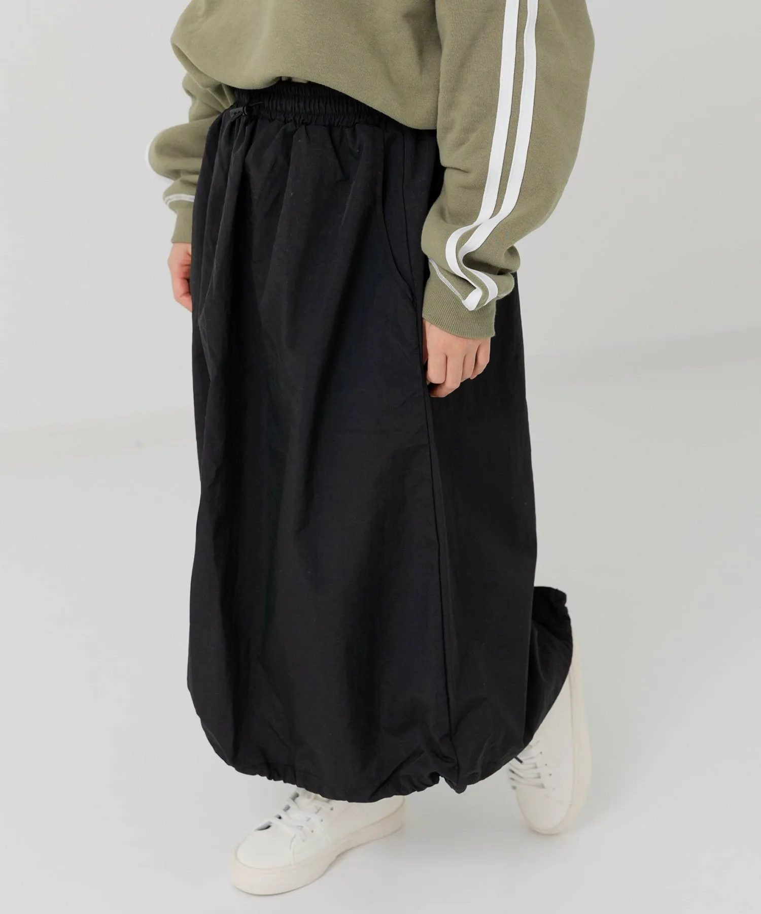 Длинная нейлоновая юбка, идеально сочетающаяся с любым топом. ☆ Затяните шнурок по низу, чтобы создать силуэт «баллон». ♪ Носите ее двумя разными способами, в зависимости от настроения и стиля!
