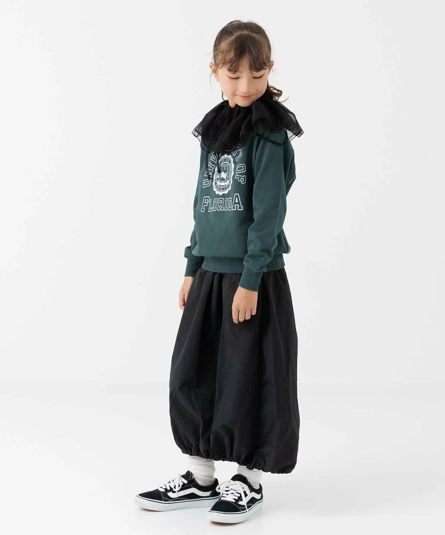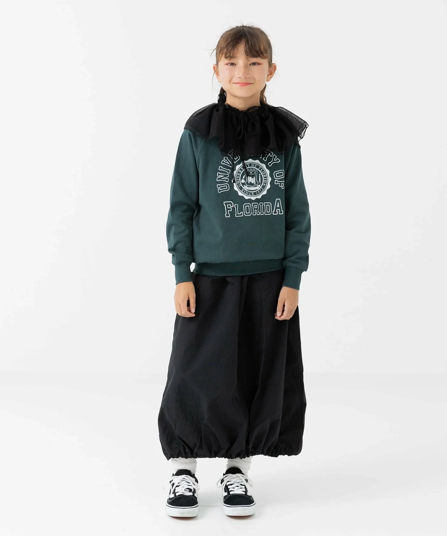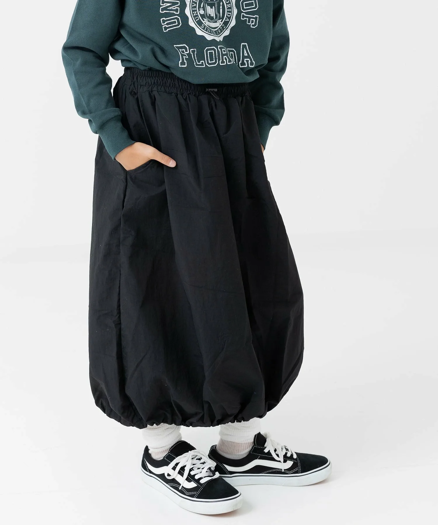 Длинная нейлоновая юбка, идеально сочетающаяся с любым топом. ☆ Затяните шнурок по низу, чтобы создать силуэт «баллон». ♪ Носите ее двумя разными способами, в зависимости от настроения и стиля!