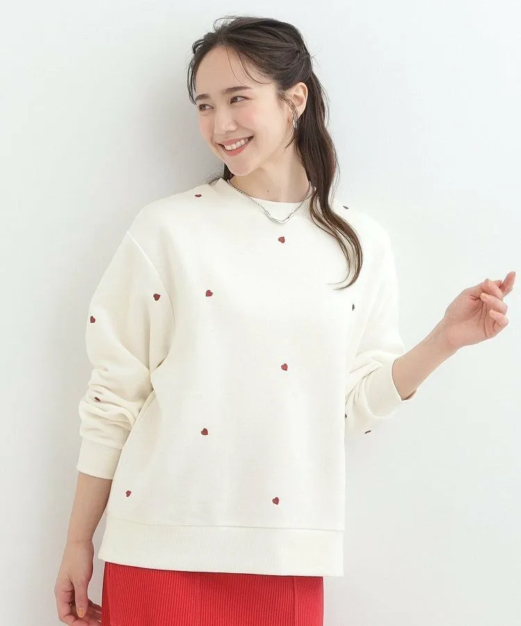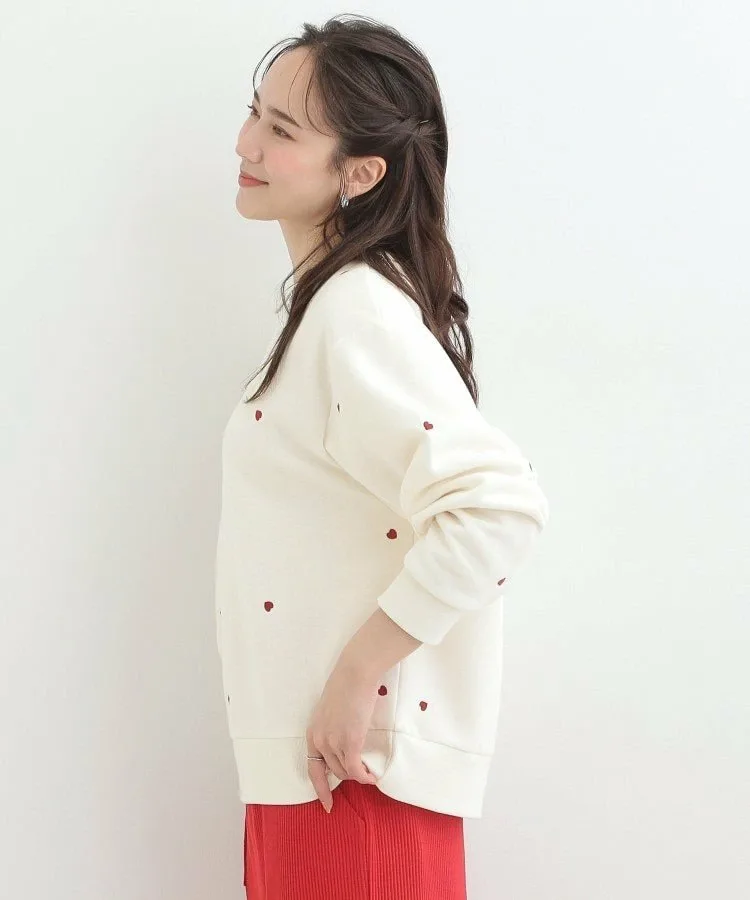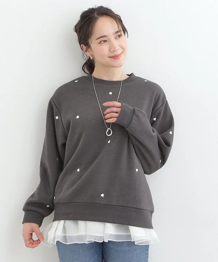 Свитшот на флисовой подкладке с двумя узорами: узором в виде сердечек по всей поверхности и вышивкой в стиле граффити.