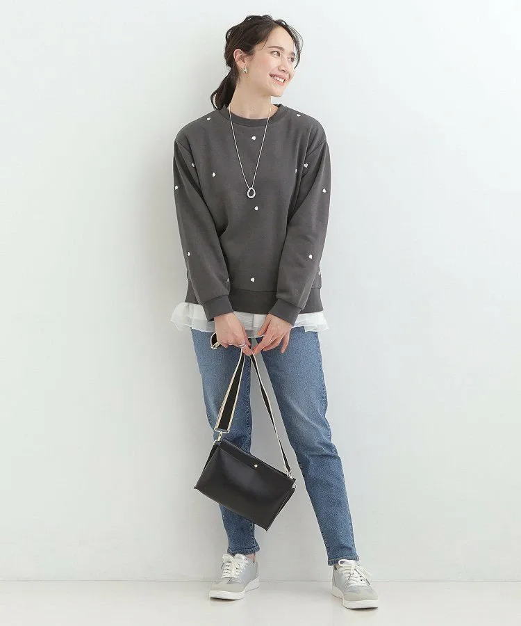Длина доходит до линии бедра, поэтому его можно носить, не заправляя. Этот свитшот имеет ненавязчивый узор для взрослых и доступен только в базовых цветах, что позволяет легко сочетать его с другими вещами.