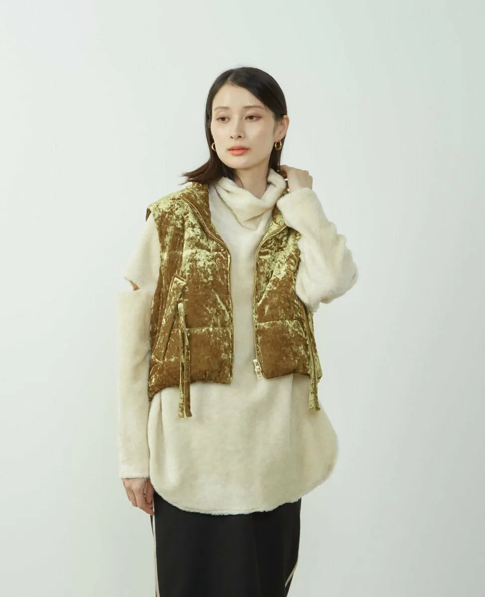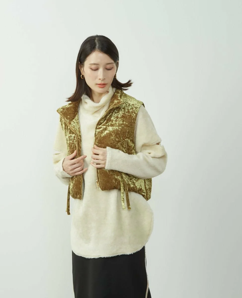 Пуловер из милого, пушистого материала с укороченными рукавами.