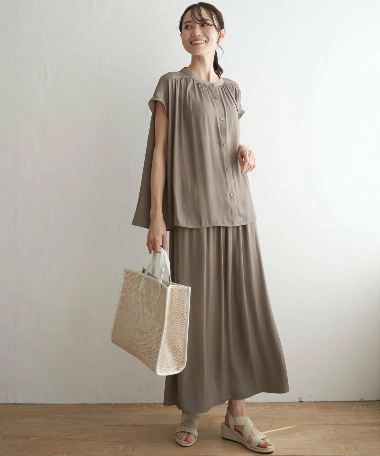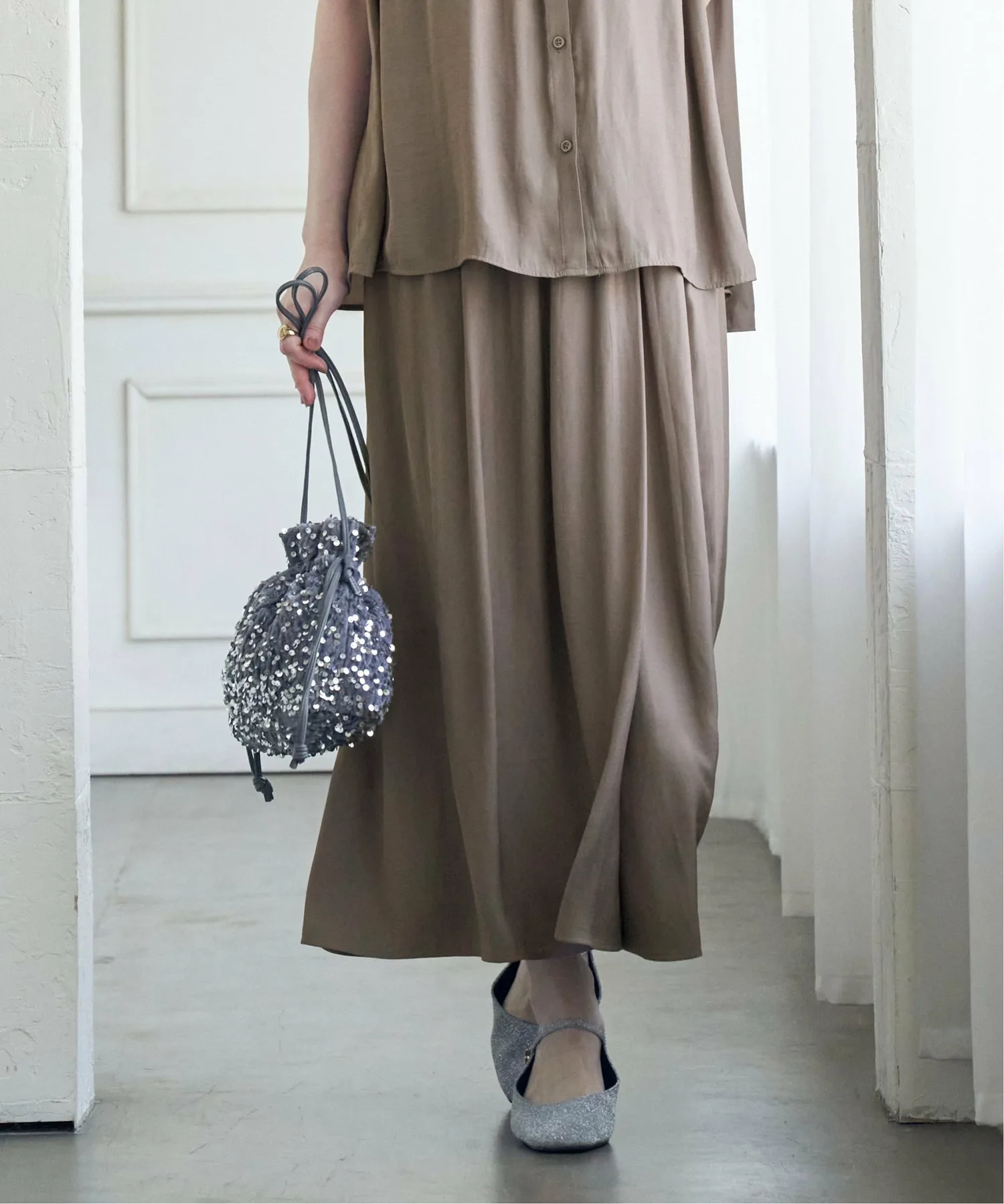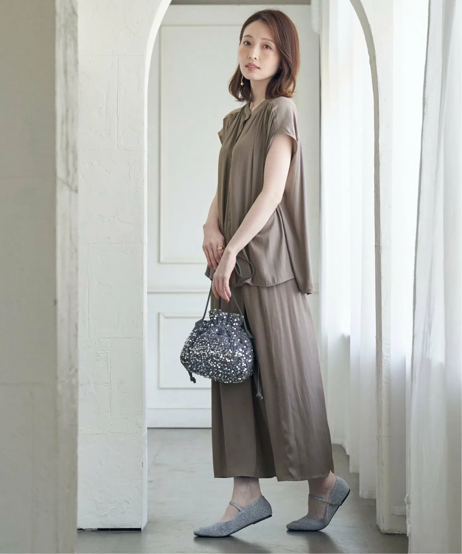 Эти юбки-шорты имеют мягкую, струящуюся текстуру, которая максимально подчеркивает драпировку материала. Их можно носить в комплекте с рубашкой, продающейся отдельно. [Материал] Изготовлены из мягкого, струящегося и элегантно текстурированного материала из расщепленных волокон с умеренным блеском. Они обладают очень драпирующейся текстурой и приятным ощущением. [Дизайн] Эти юбки-шорты выглядят как юбка-обертка спереди и широкие брюки сзади. [Стиль Ikka Point] Эти юбки-шорты имеют обильные сборки, которые позволяют им колыхаться при каждом движении, создавая красивый силуэт. Эластичная резинка делает их удобными в ношении, а спереди они напоминают юбку, что позволяет создать более повседневный образ. [Рекомендуемое сочетание] Также доступна рубашка из того же материала, продающаяся отдельно, что делает их рекомендуемым выбором для более элегантного комплекта.