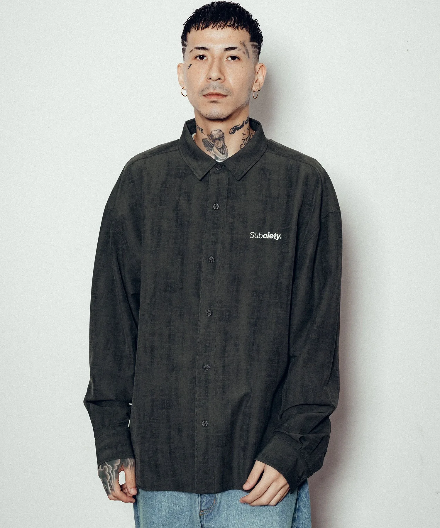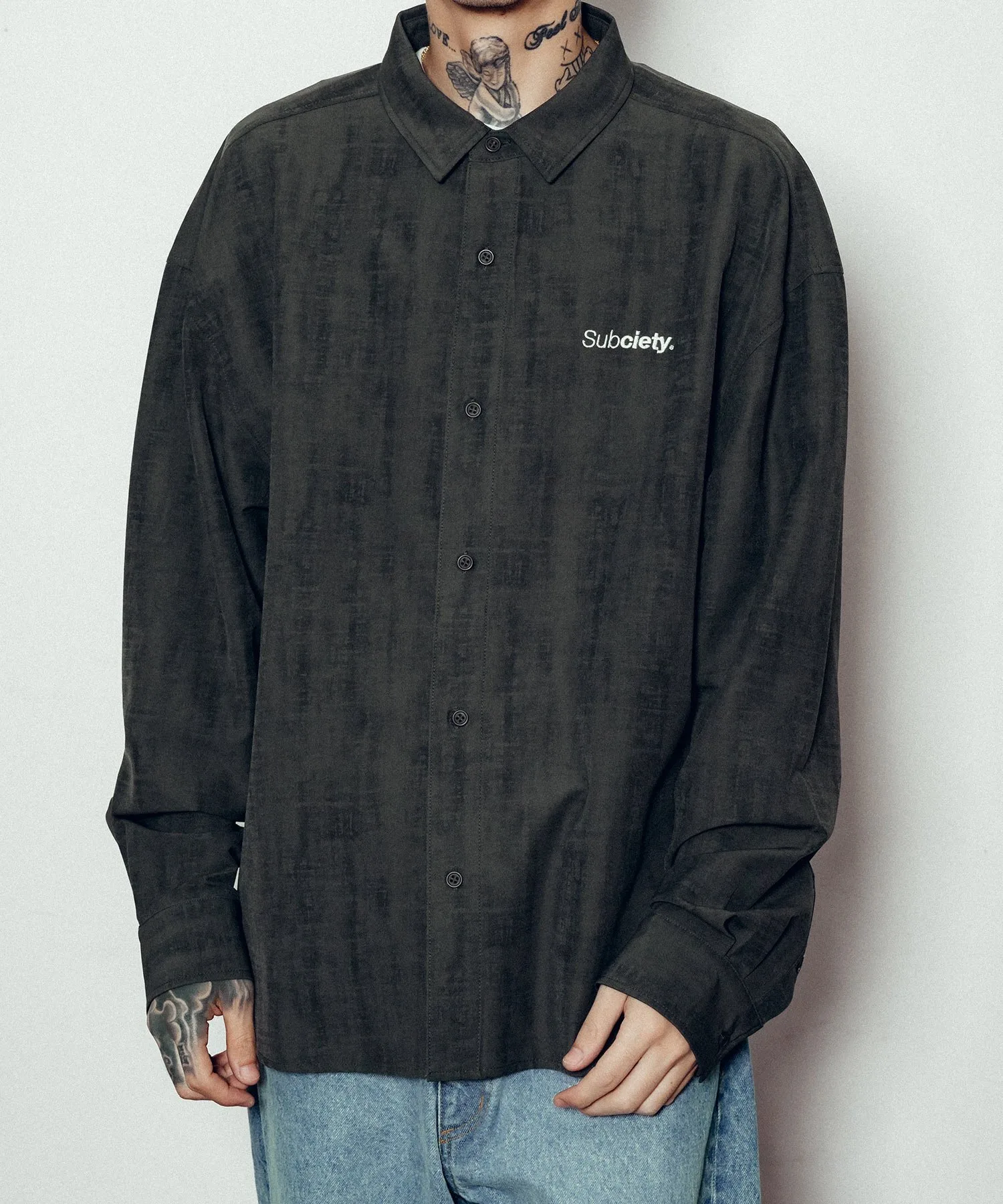Несмотря на то, что это классическая рубашка с обычным воротником, эффект потертости и окрашивания по всей поверхности придают ей уникальный вид.