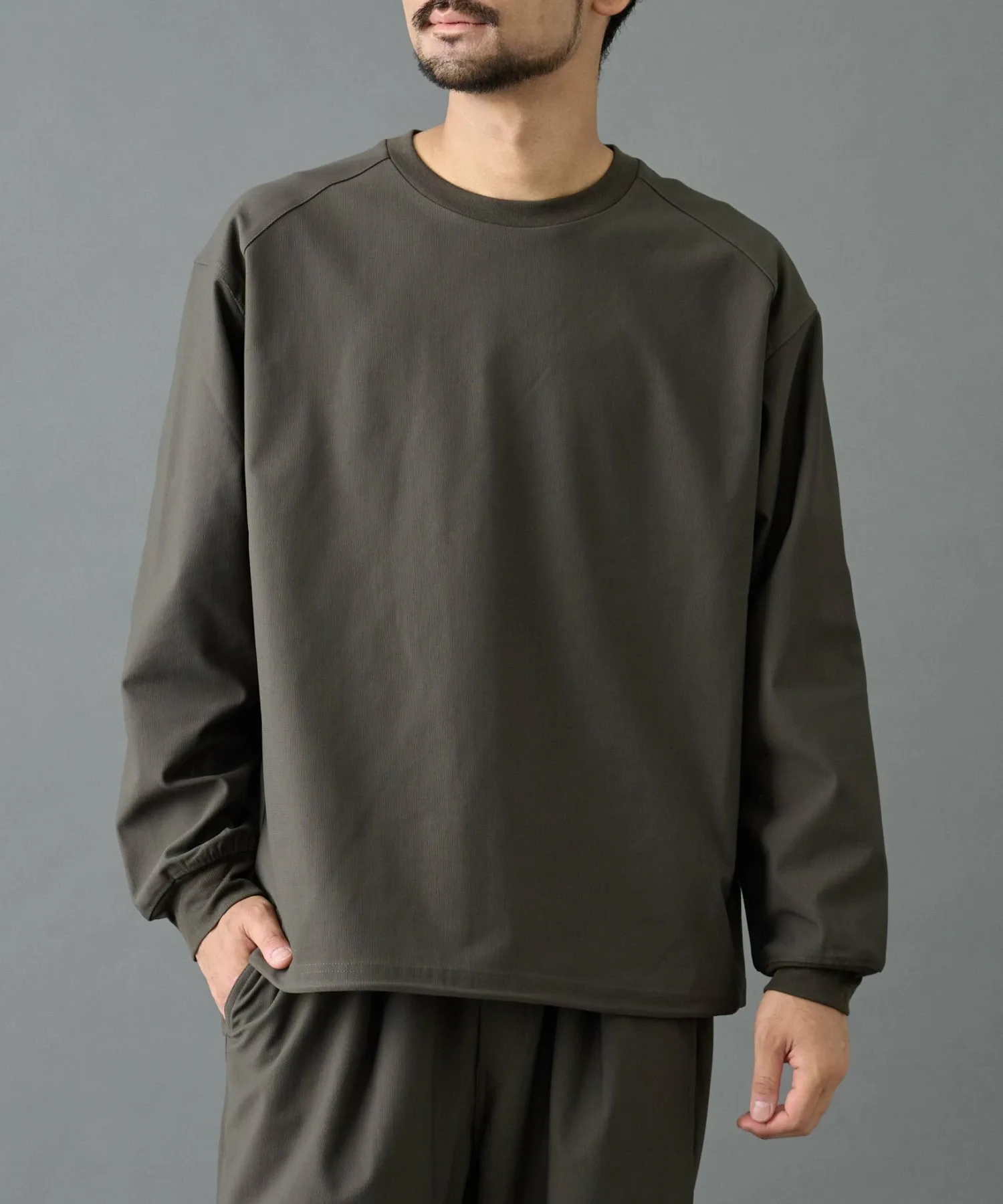 Пуловер изготовлен из эластичного материала с сетчатой структурой, сочетающего в себе оптимальную толщину и высокую эластичность.
