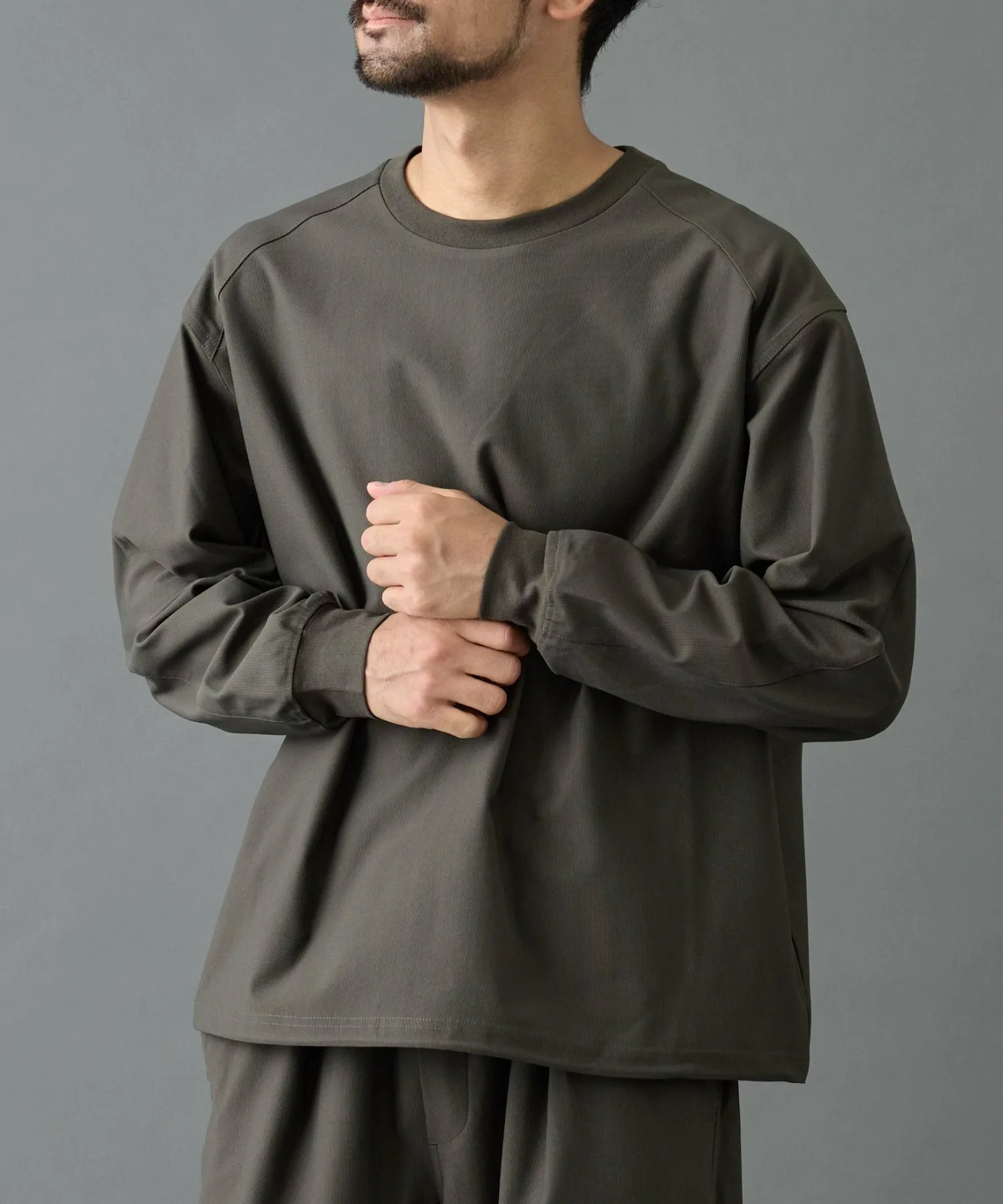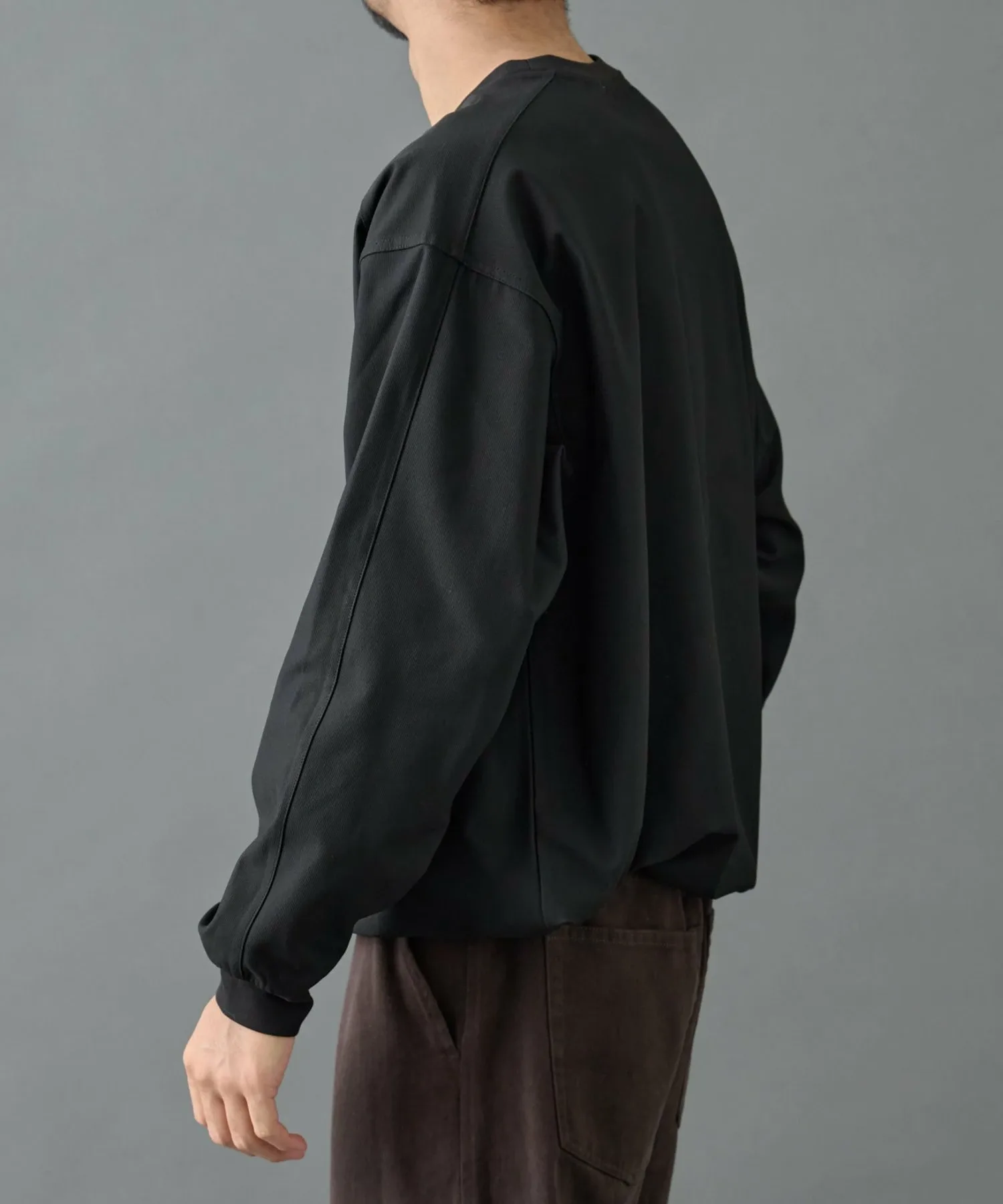 Пуловер изготовлен из эластичного материала с сетчатой структурой, сочетающего в себе оптимальную толщину и высокую эластичность.