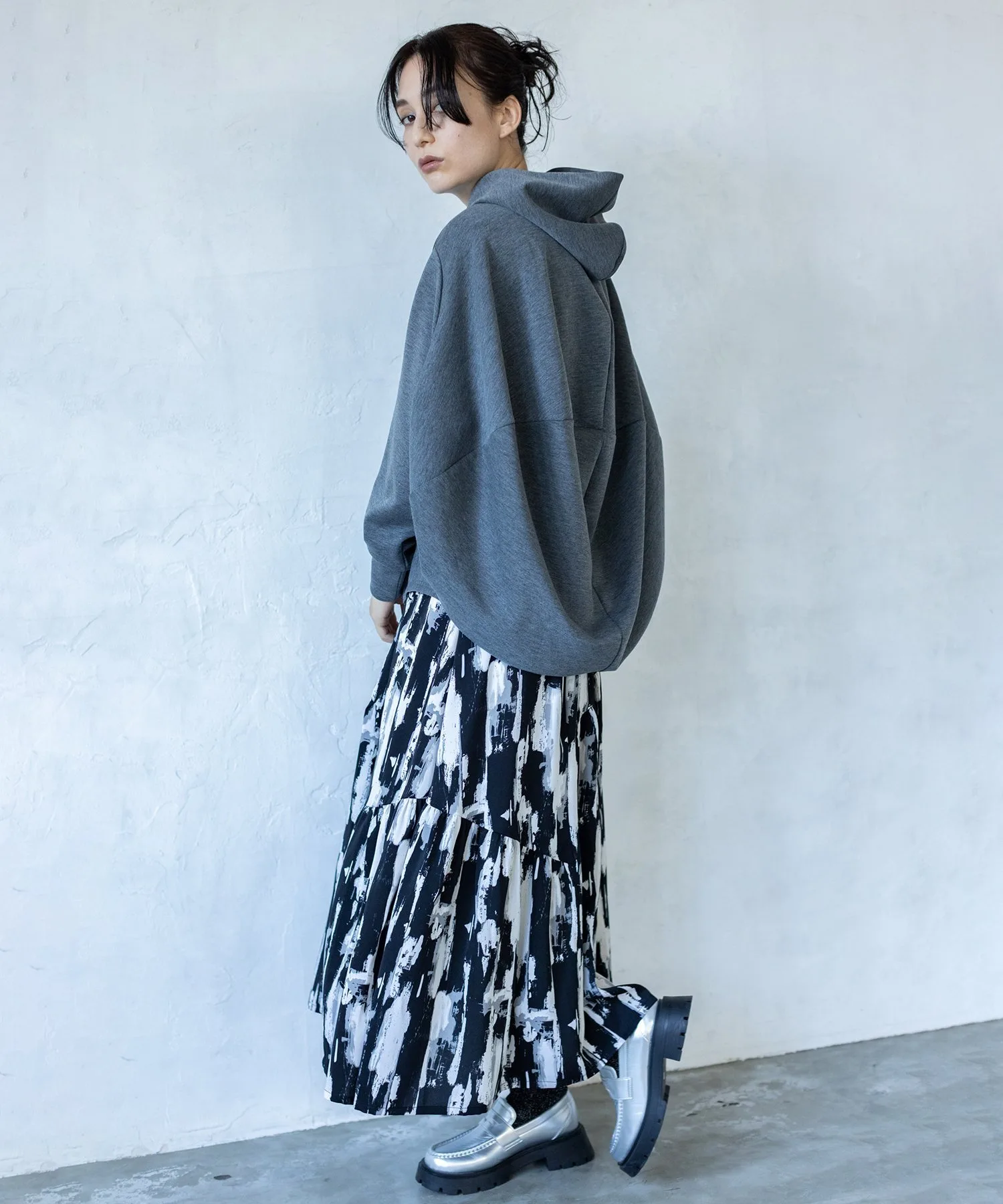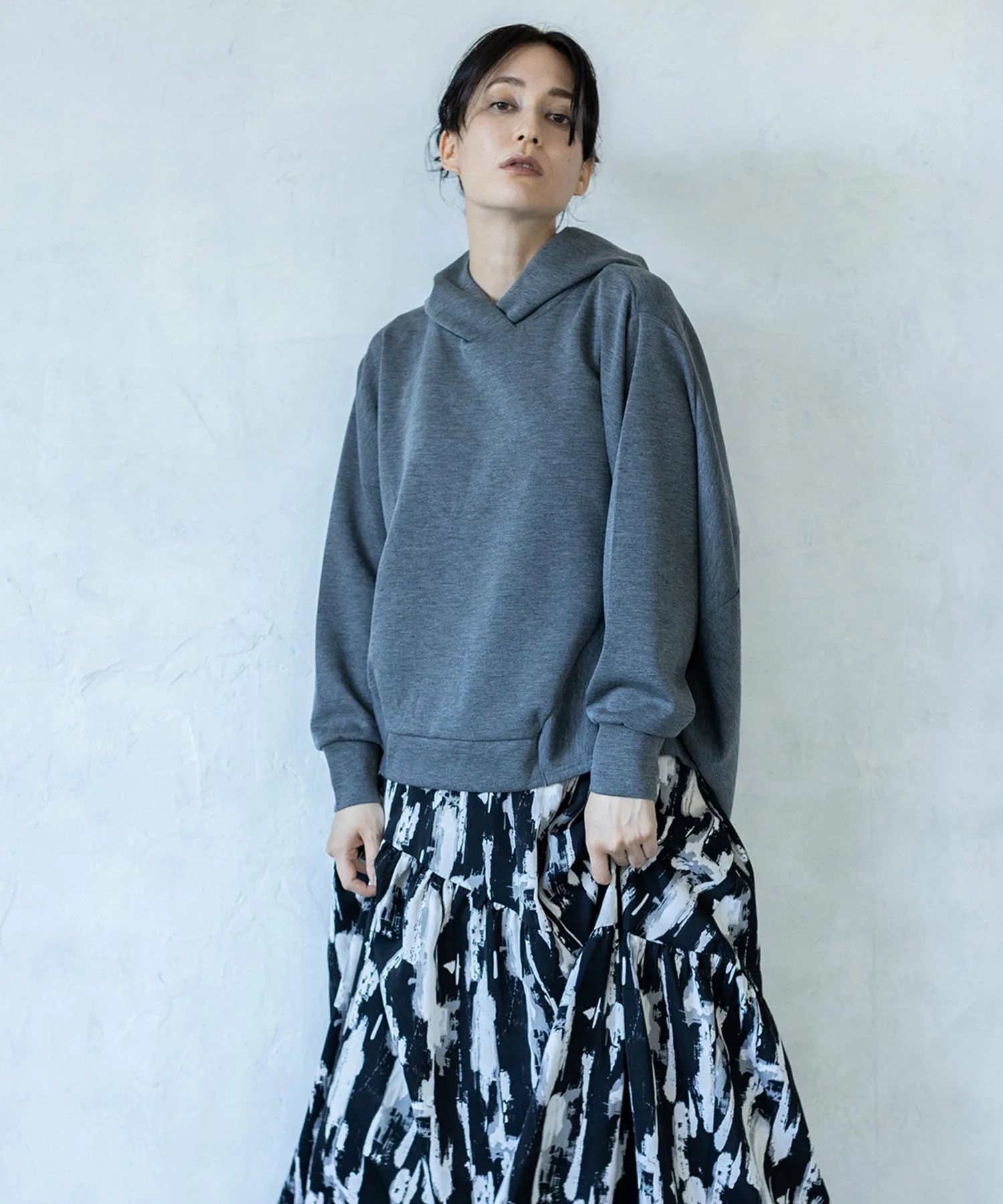 Худи с объемным капюшоном, силуэтом-коконом и драпировкой на спине для модного образа.