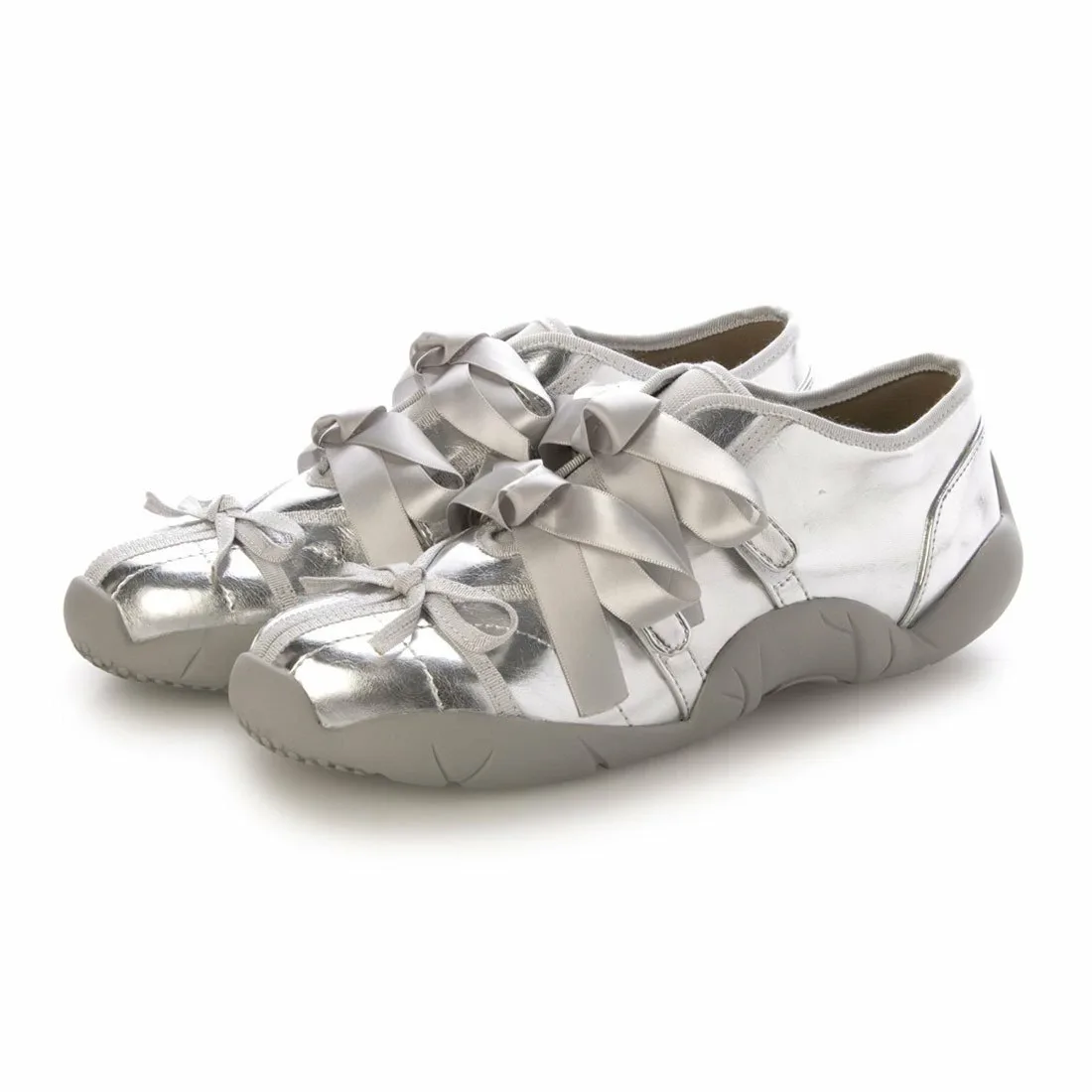 Женские балетные кроссовки с лентами. Мягкие, пушистые и удобные для ходьбы. Женственные, девичьи, женственные, серебристые, мини-длина, носки, повседневные, для путешествий, с глубоким подъемом, устойчивые, износостойкие, доступны в больших размерах (LL), идеально подходят для повседневного использования и носки.