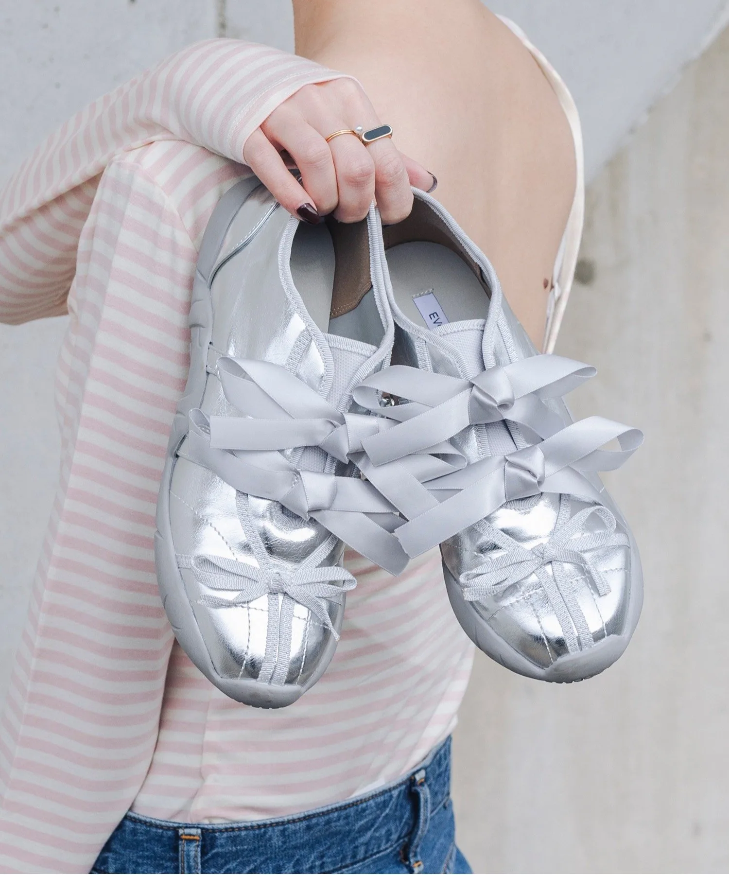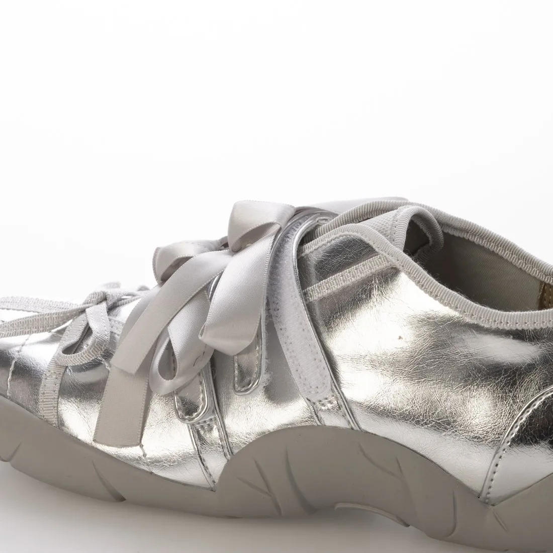 Эти кроссовки обладают модным балетным стилем. Мотив ленточных шнурков придает им женственность, а округлый силуэт добавляет непринужденности. Застежка на липучке позволяет легко надевать и снимать их! Сочетайте их с брюками мини-юбки и носками для создания повседневного, стильного образа.