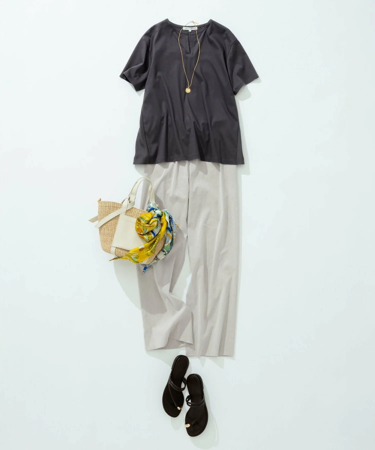 Передняя часть представляет собой простую футболку с коротким рукавом, скроенную и сшитую со складками, которые расходятся из-под кокетки на спине. Сочетание тканых материалов создает стильный и эффектный фасон спинки. Боковые швы слегка вывернуты вперед, создавая пространство в области талии и ненавязчиво скрывая проблемные зоны. Несмотря на простой дизайн, выразительный силуэт добавляет стильный штрих к любому образу. Доступна в четырех цветах: освежающий белый (#001), стройнящий черный (#005), привлекательный темно-абрикосовый (#014) и приглушенный темно-коричневый (#035).