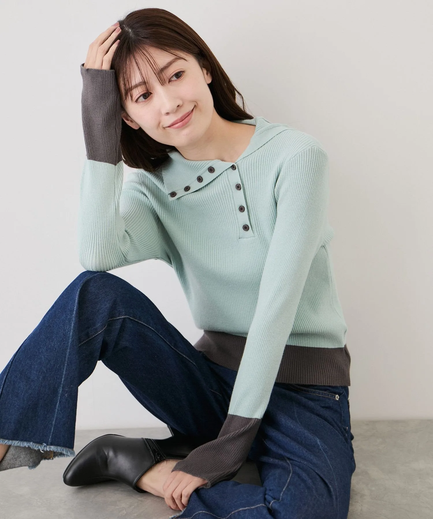 Игривое сочетание цветов: этот двухцветный трикотаж в рубчик с отверстиями для больших пальцев отличается игривой цветовой гаммой. [Дизайн и силуэт]