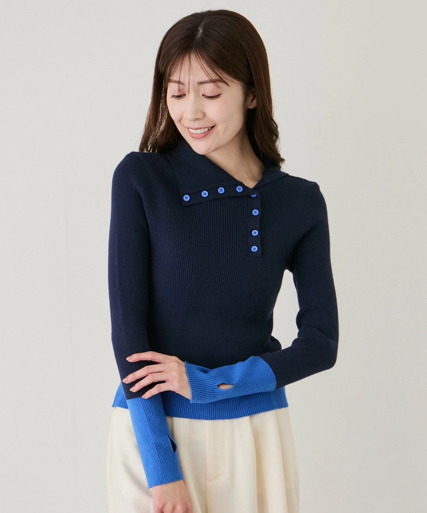 Игривое сочетание цветов: этот двухцветный трикотаж в рубчик с отверстиями для больших пальцев отличается игривой цветовой гаммой. [Дизайн и силуэт]