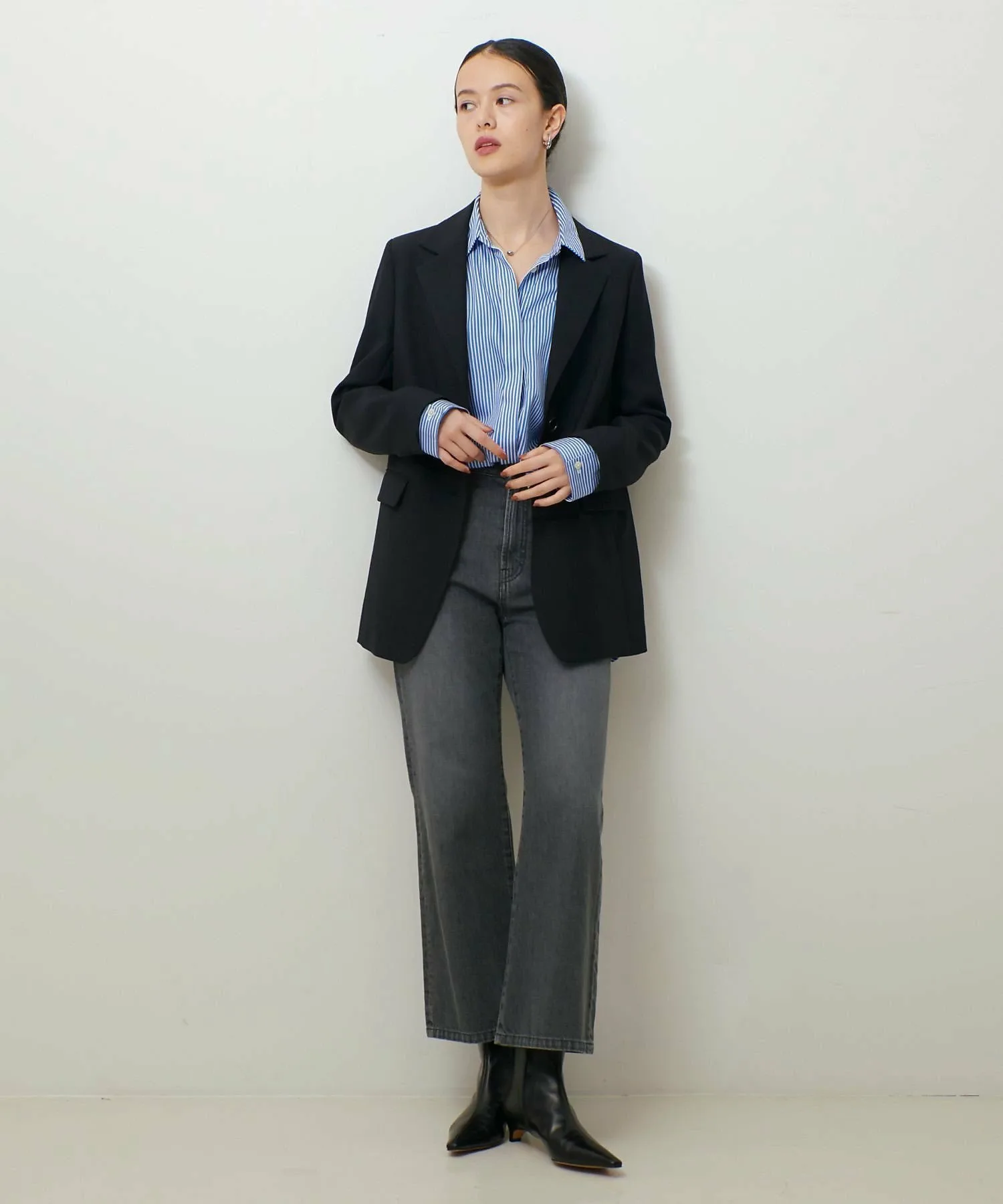 В сочетании с брюками из того же материала (32510050018) он создает как аккуратный, так и расслабленный образ.