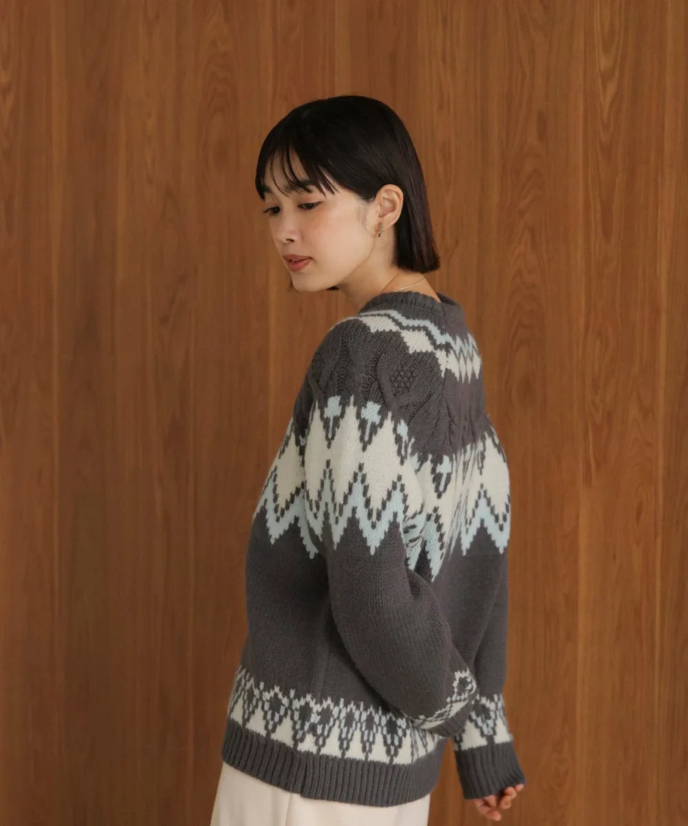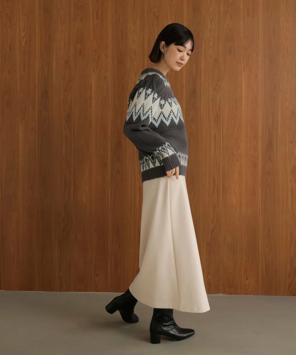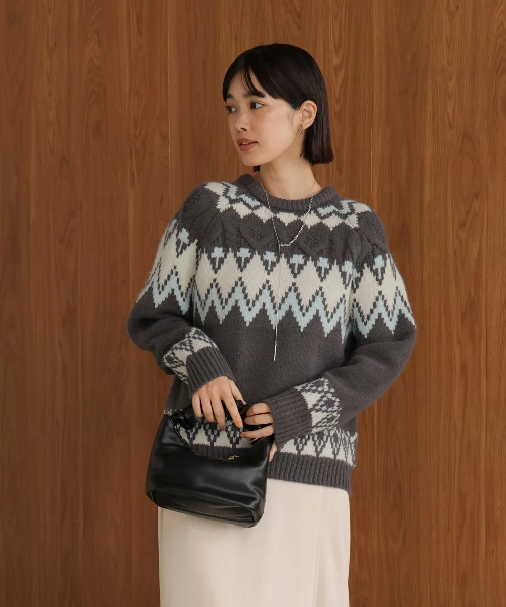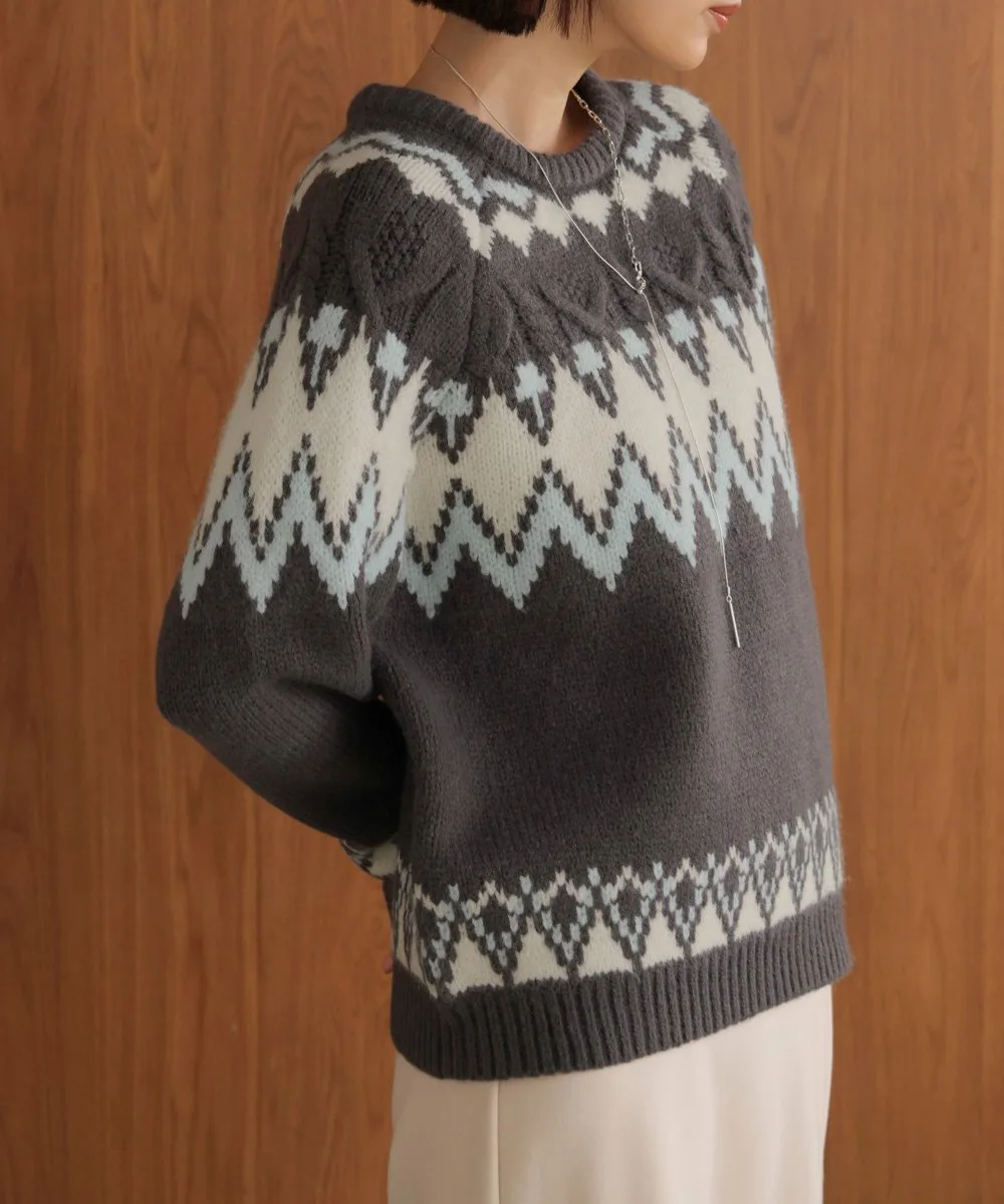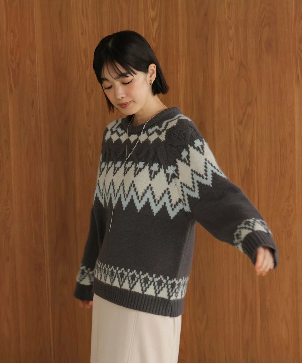 ТОЧКАИзысканный трикотаж с ярким жаккардовым узором. Мягкая, сдержанная цветовая гамма создает элегантное впечатление, не будучи при этом слишком приторной. Свободный силуэт прекрасно подчеркивает фигуру, создавая утонченный образ.