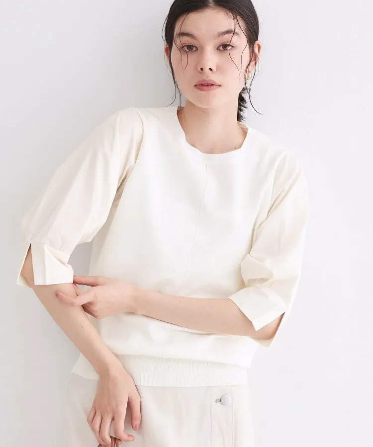 Очень популярный топ-докинг, сочетающий в себе трикотажную основу и рукава с текстурой рубашки.