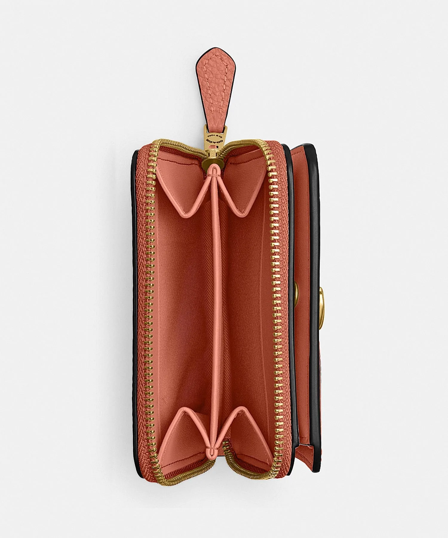 Этот миниатюрный кошелек-портмоне изготовлен из полированной зернистой кожи. Его фирменная фурнитура выделяет его среди других. Трехсторонний карман для монет имеет удобное отделение для чеков или наушников. Расстегните застежки, чтобы открыть восемь слотов для карт и отделение для банкнот.