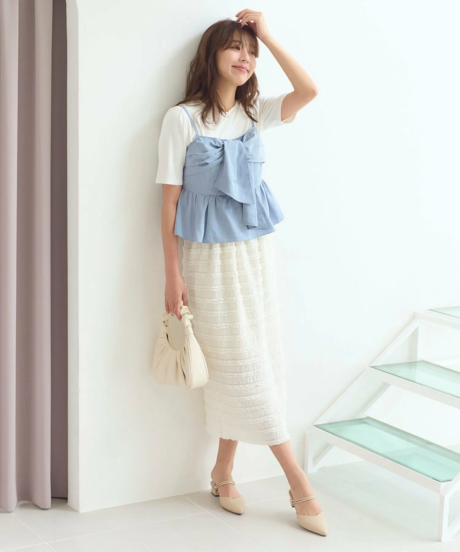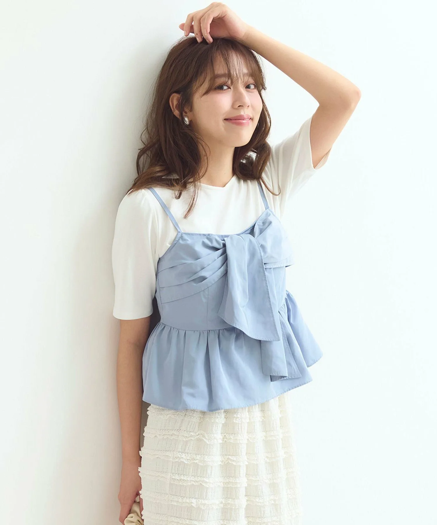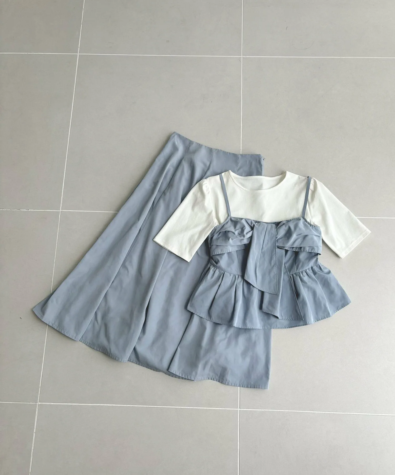 Этот комплект состоит из майки и сшитого из ткани топа с объемным ленточным узором!